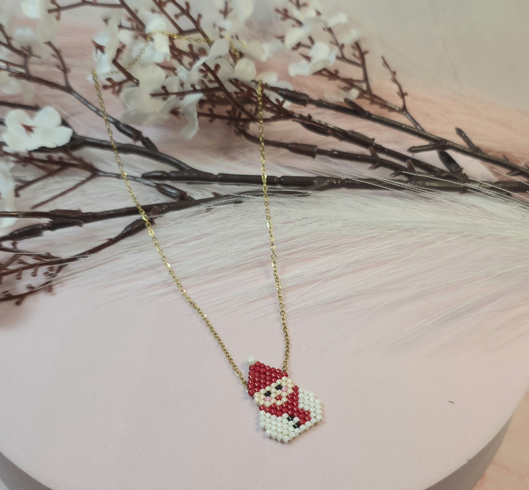 Ατσάλινο κολιέ miyuki χιονάνθρωπος. Είναι υποαλλεργικό. Έχει αυξομείωση.