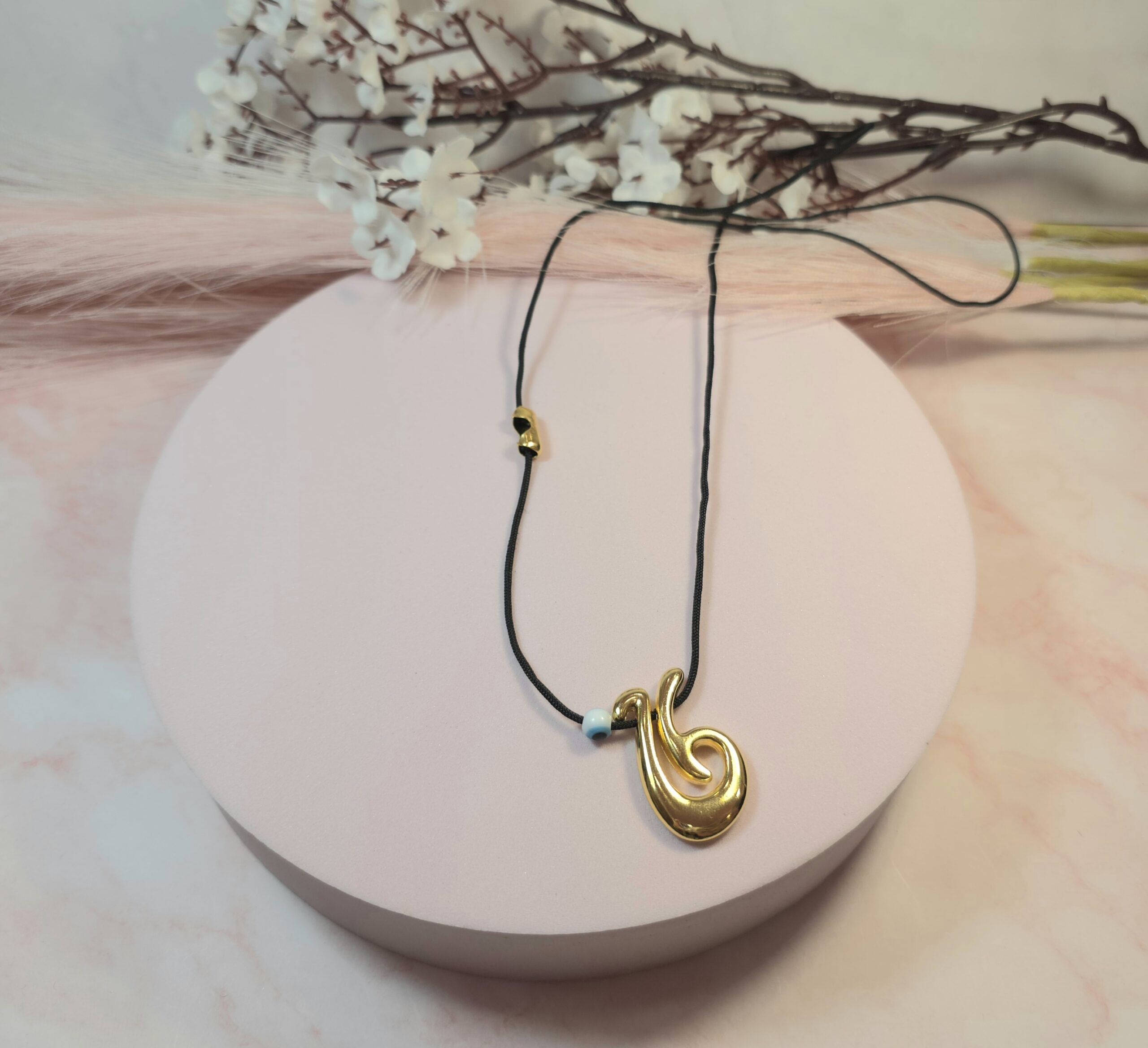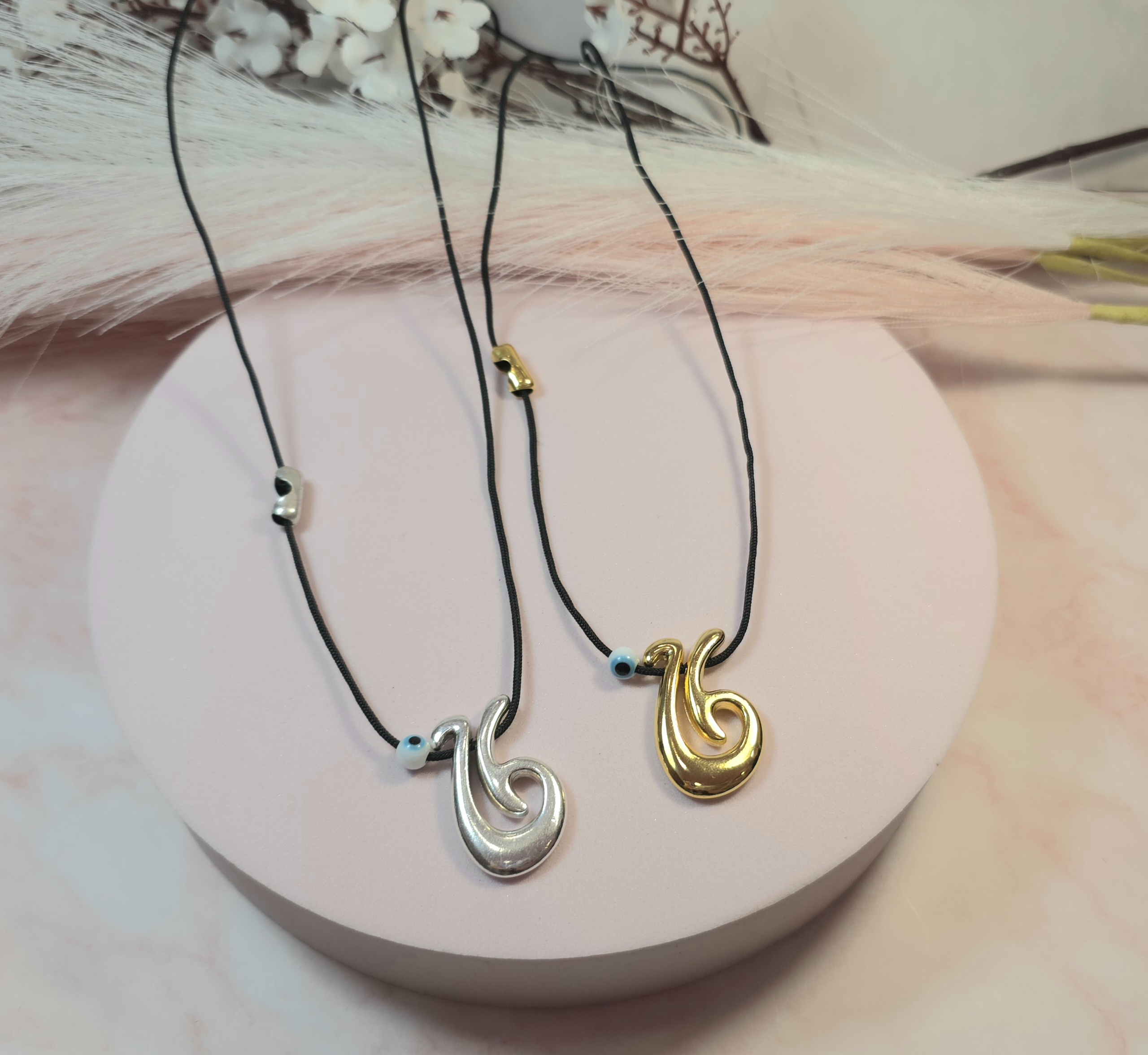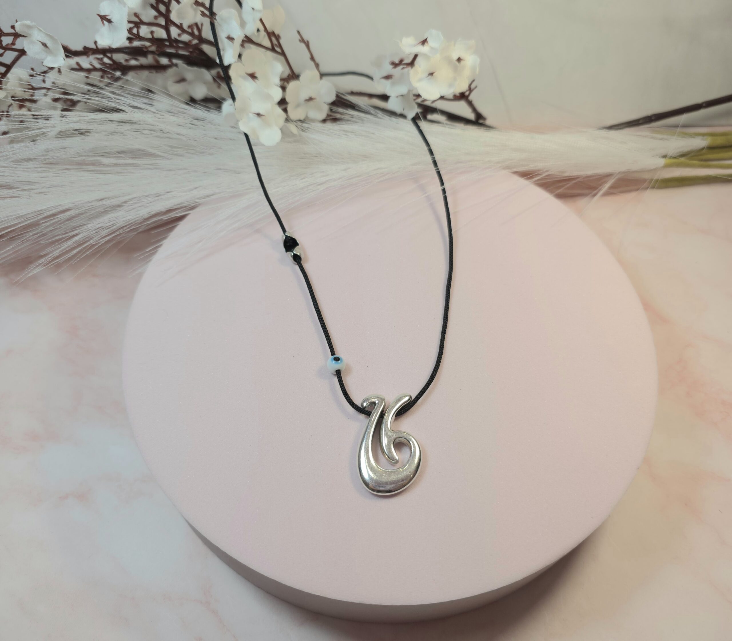 Χειροποίητο κολιέ γούρι, από μαύρο κορδόνι και επάργυρο ή επίχρυσο στοιχείο 26. Είναι υποαλλεργικό. Έχει διακοσμητικό κούμπωμα στο πλάι και μπορεί να φορεθεί και διπλό.