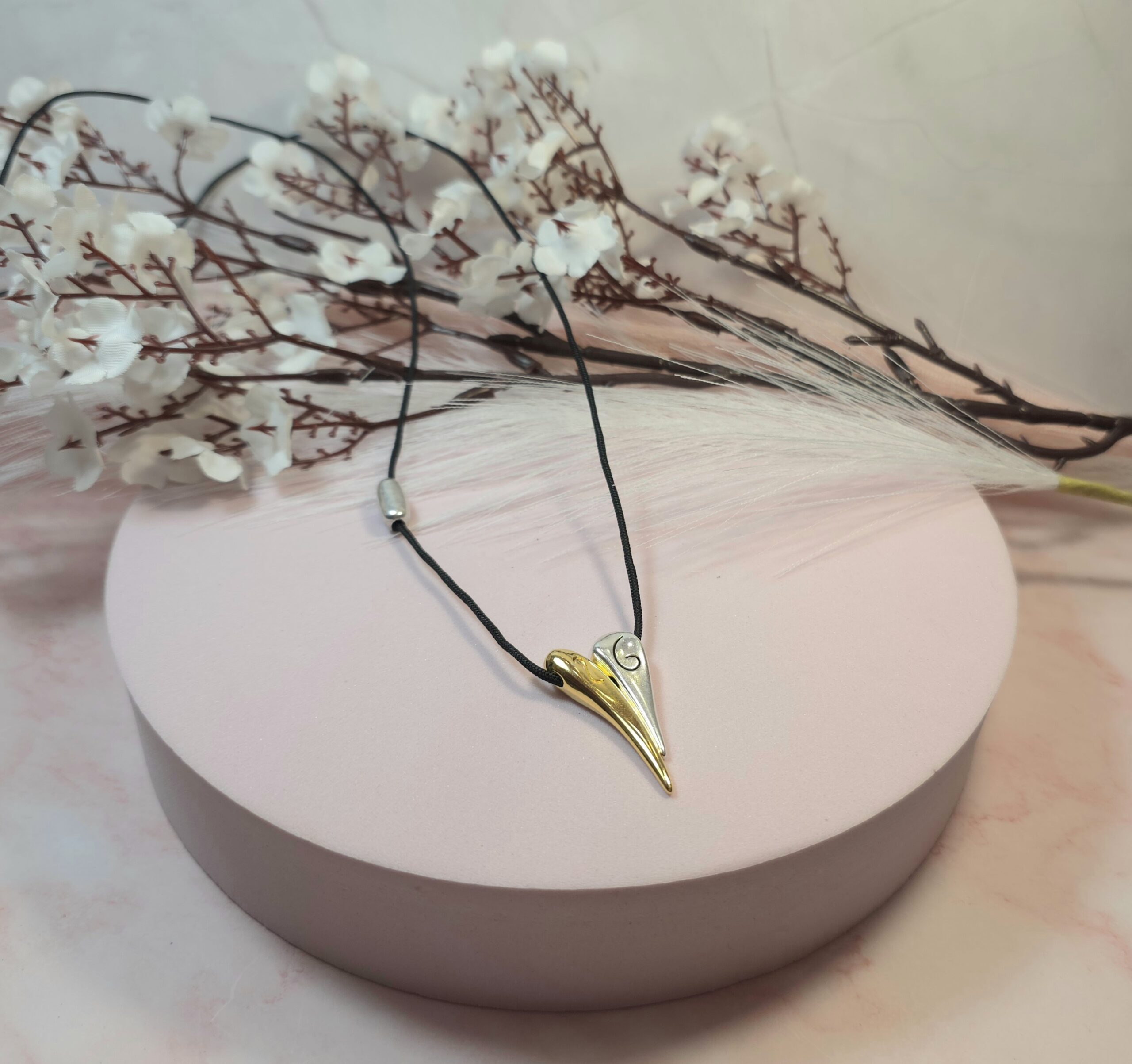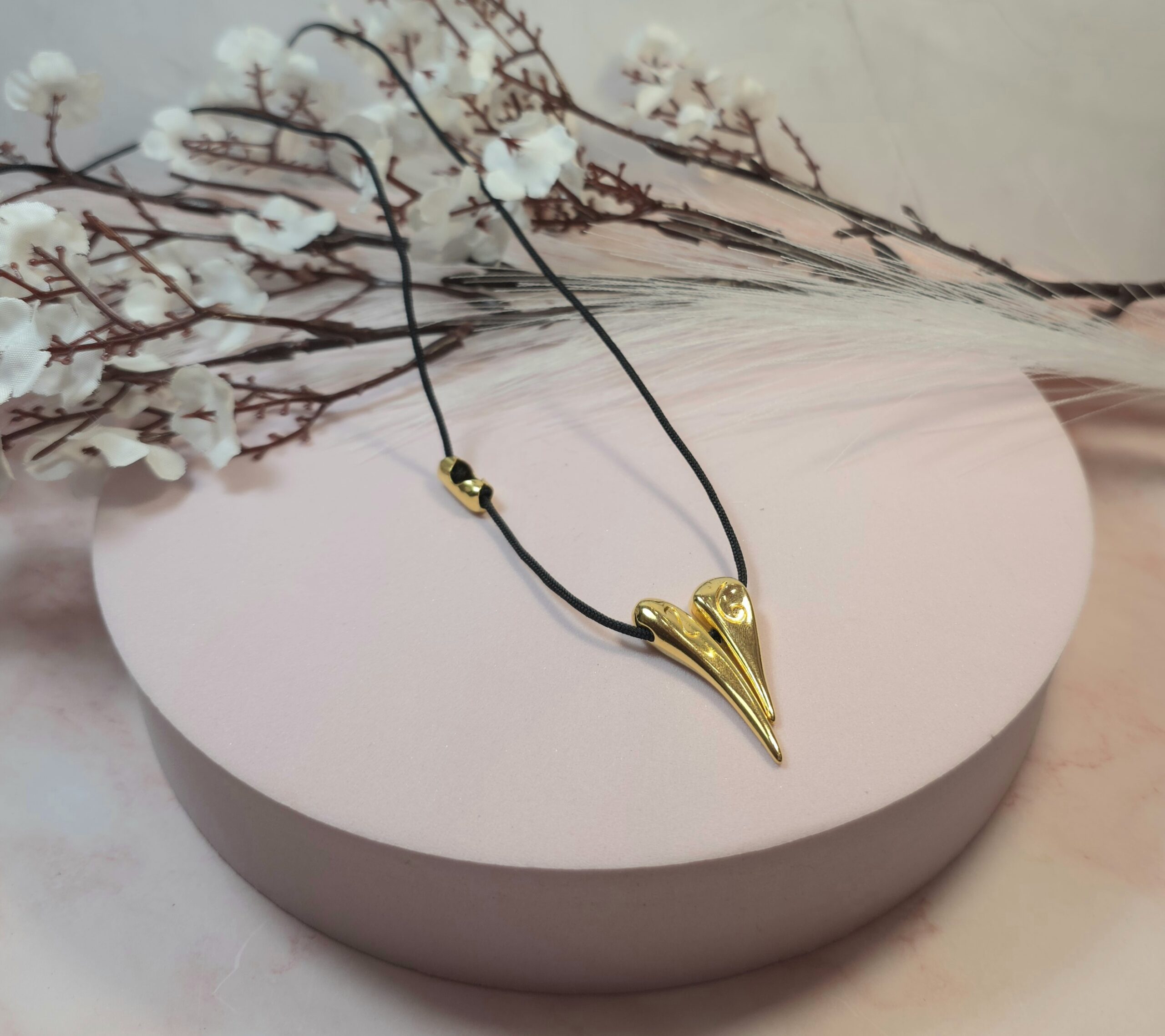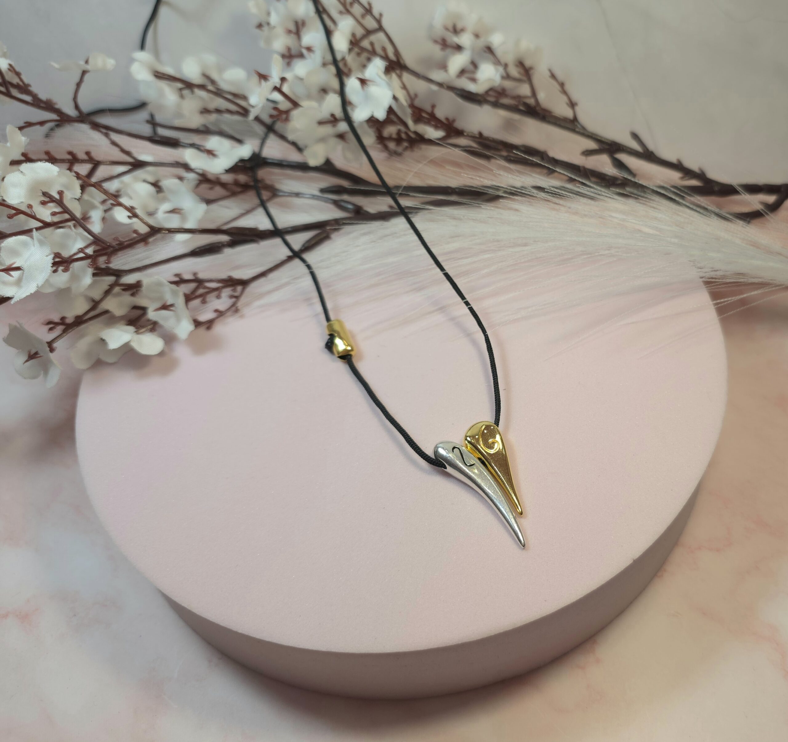 Χειροποίητο κολιέ γούρι, από μαύρο κορδόνι και επάργυρο ή επίχρυσο στοιχείο καρδιά με το 26 πάνω. Είναι υποαλλεργικό. Έχει διακοσμητικό κούμπωμα στο πλάι και μπορεί να φορεθεί και διπλό.