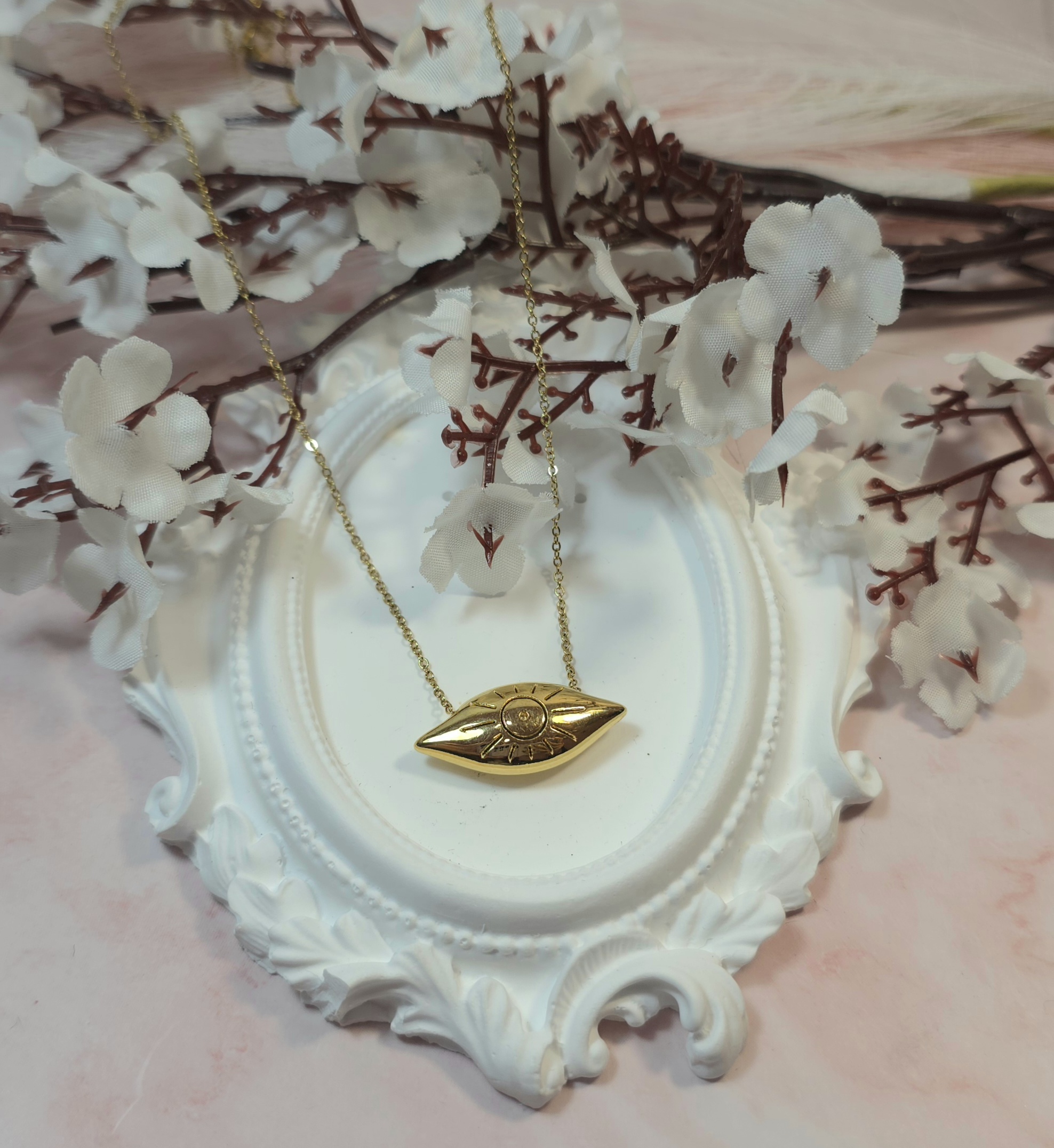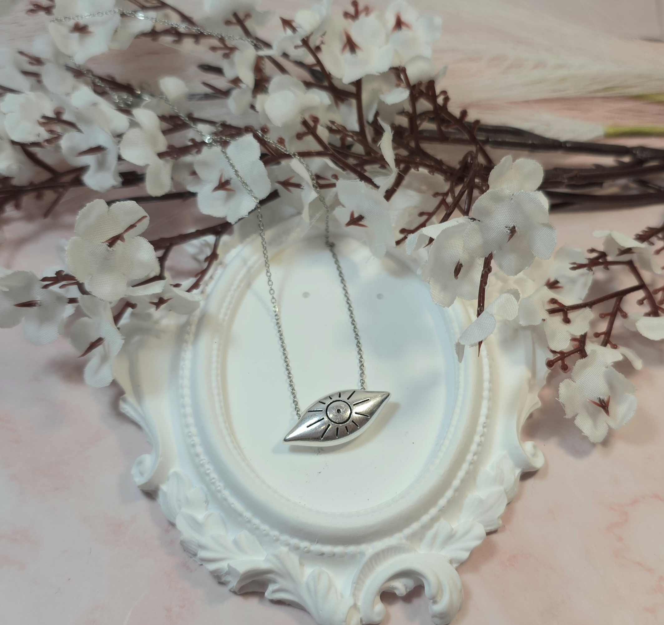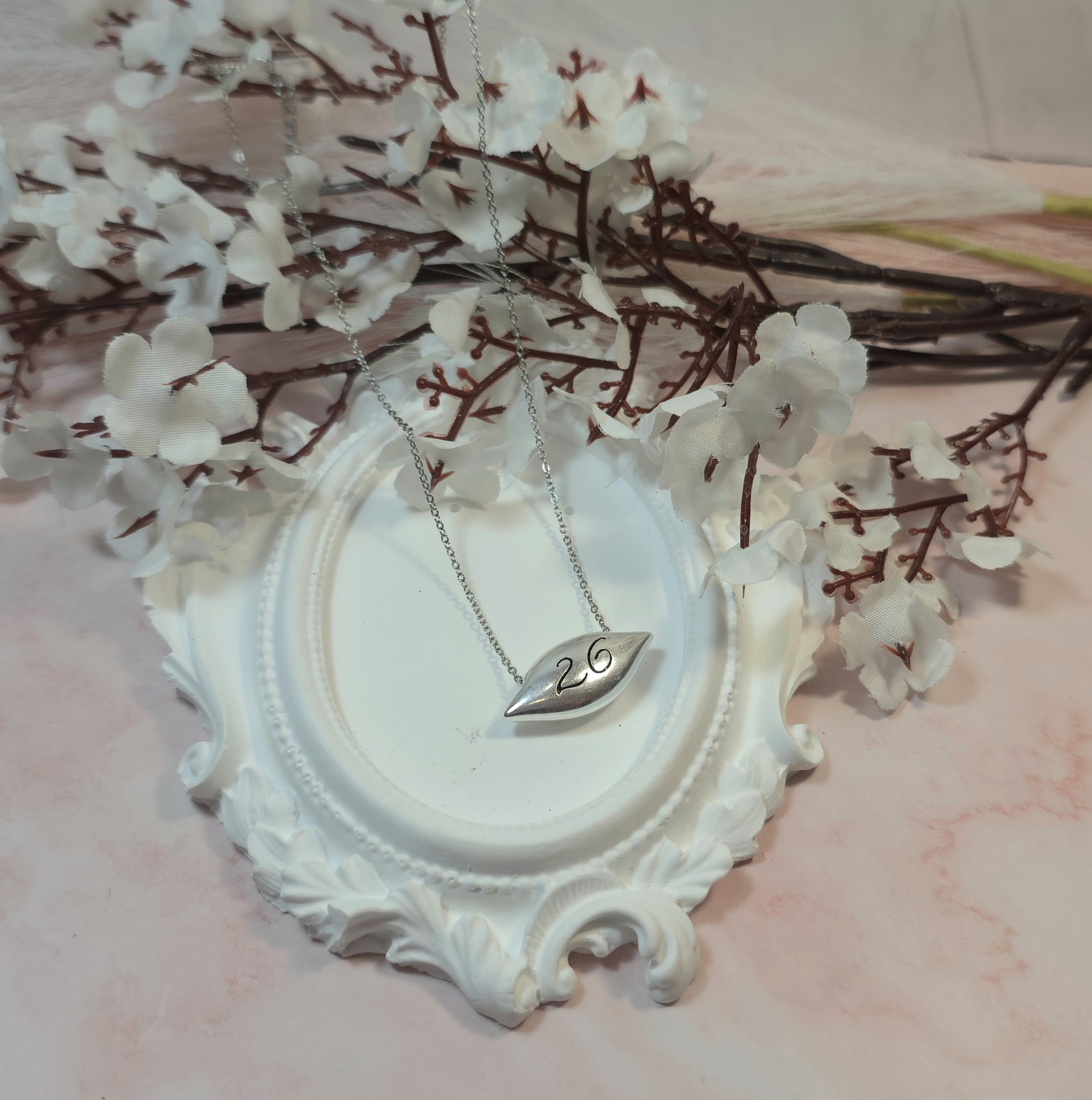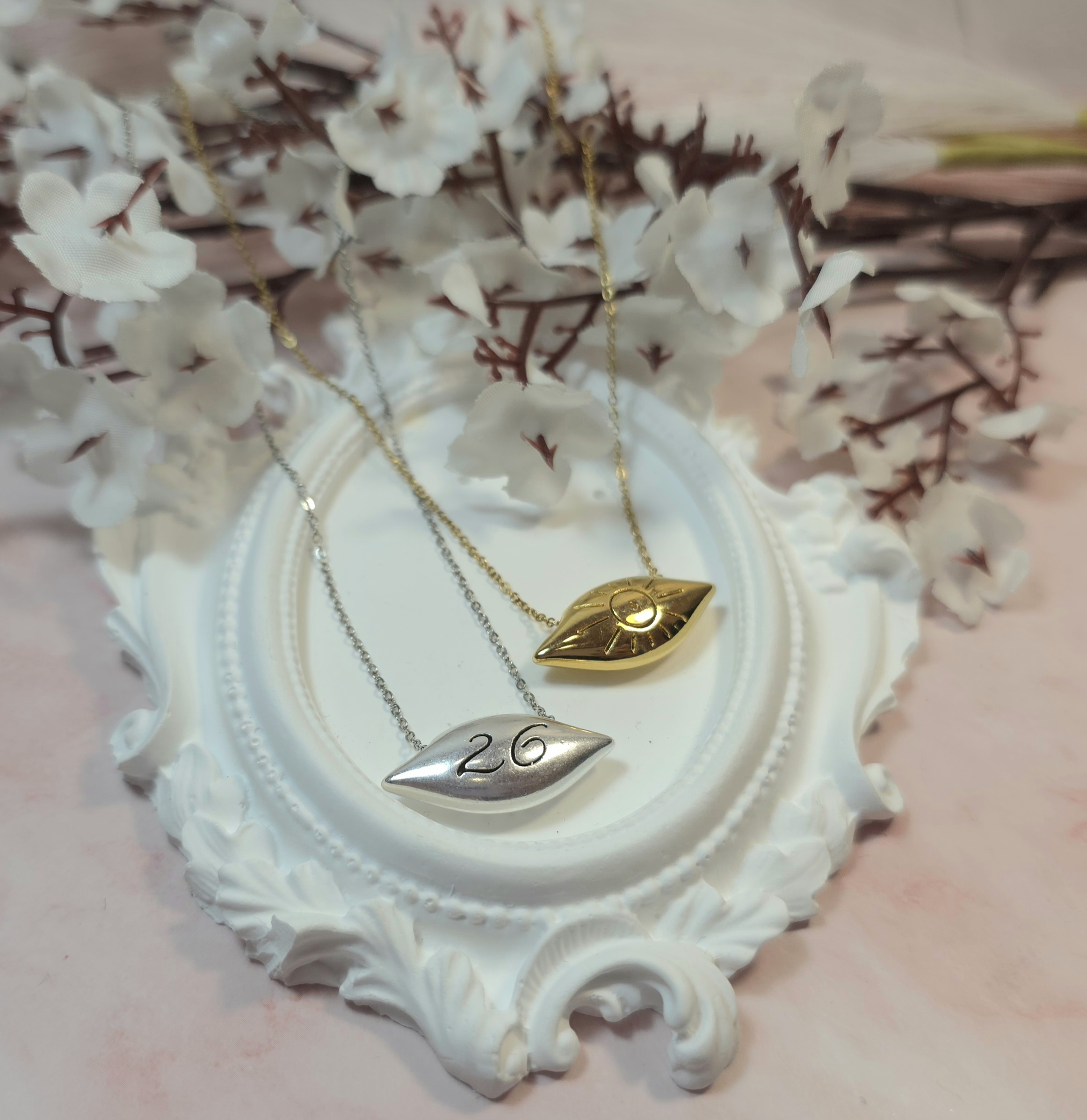 Χειροποίητο κολιέ γούρι, από ατσάλινη αλυσίδα και επάργυρο ή επίχρυσο στοιχείο μάτι από τη μία πλευρά και το 26 από την άλλη. . Είναι υποαλλεργικό. Έχει αυξομείωση.