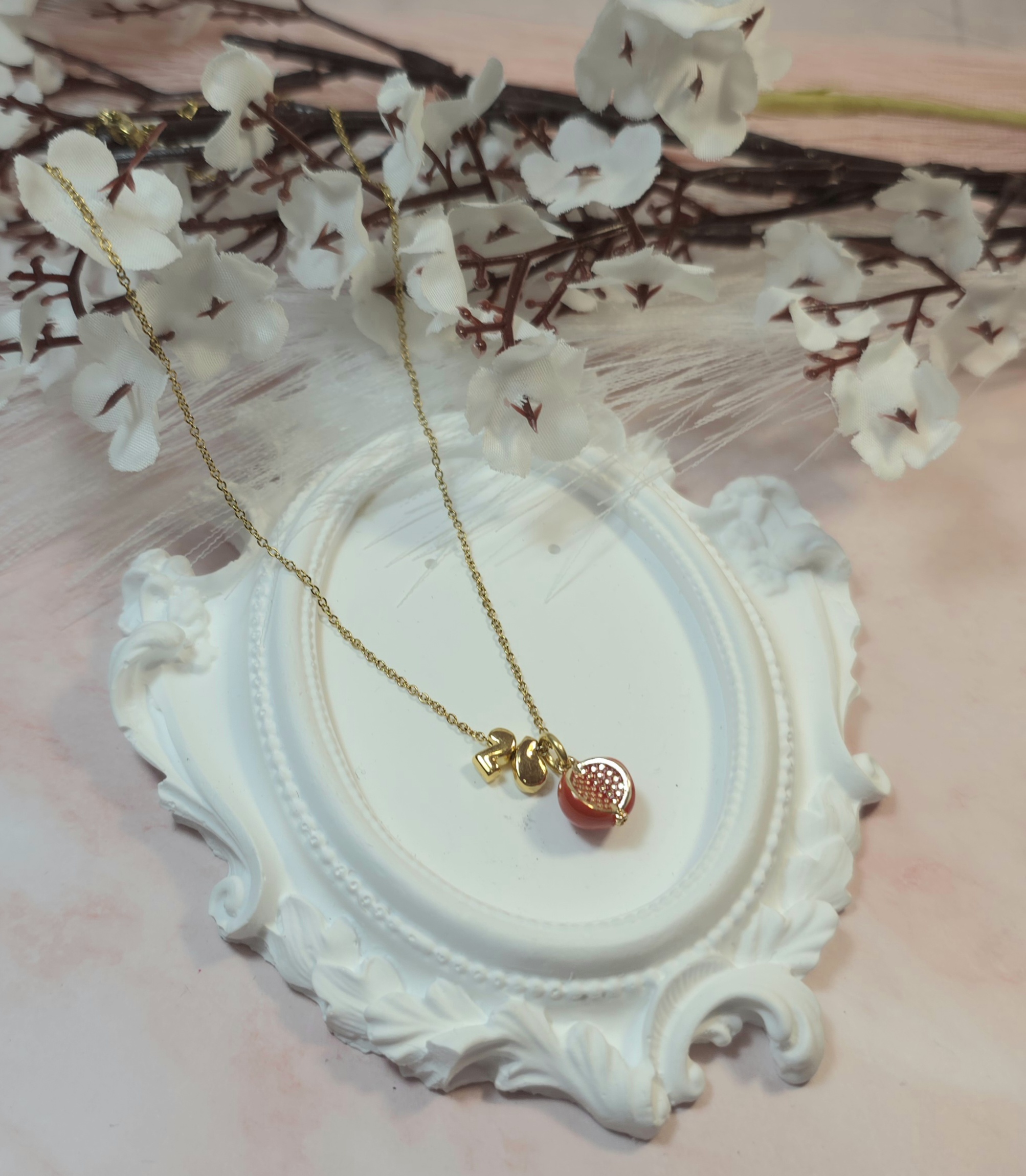 Χειροποίητο κολιέ γούρι, από ατσάλινη αλυσίδα και επίχρυσο στοιχείο ρόδι και το 26. Είναι υποαλλεργικό. Έχει αυξομείωση.