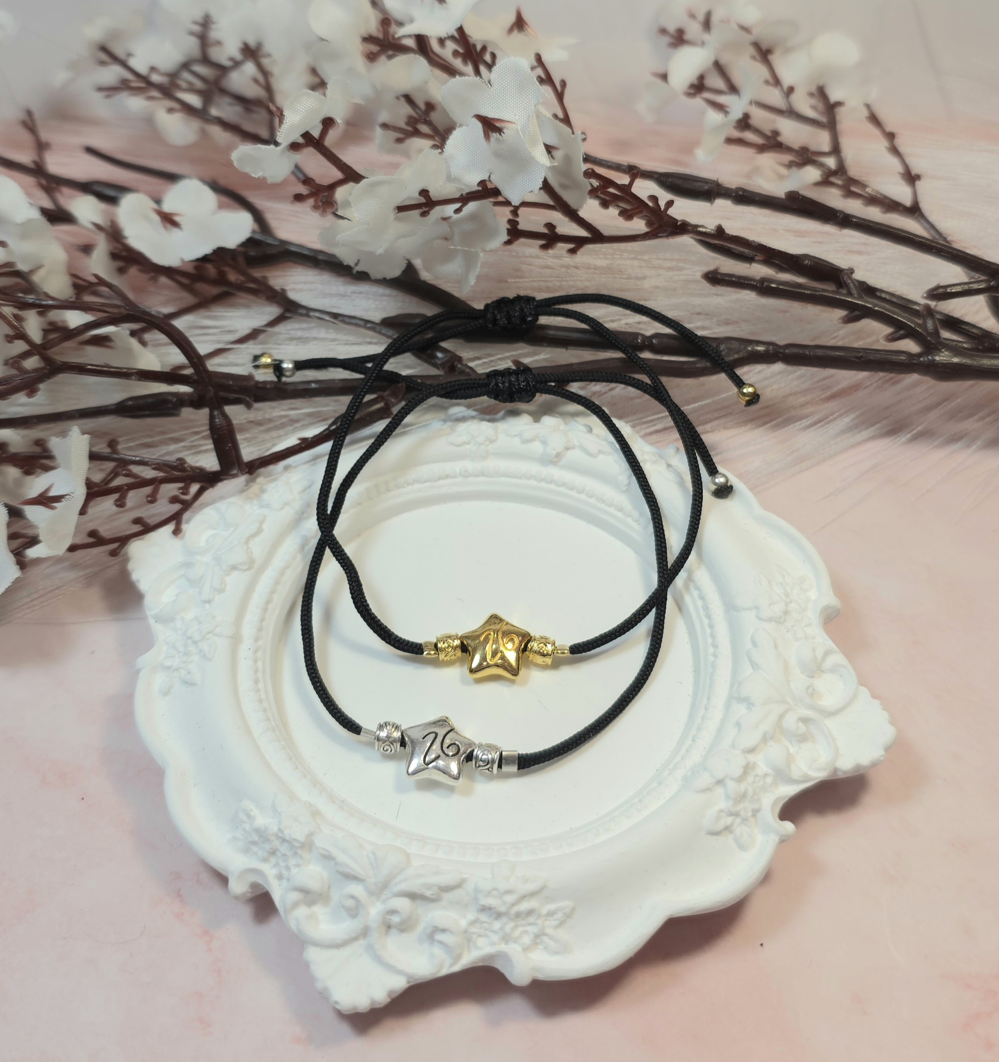 Χειροποίητο βραχιόλι γούρι, από επάργυρα ή επίχρυσα στοιχεία καρδιά με το 26. Είναι υποαλλεργικό. Έχει αυξομείωση.