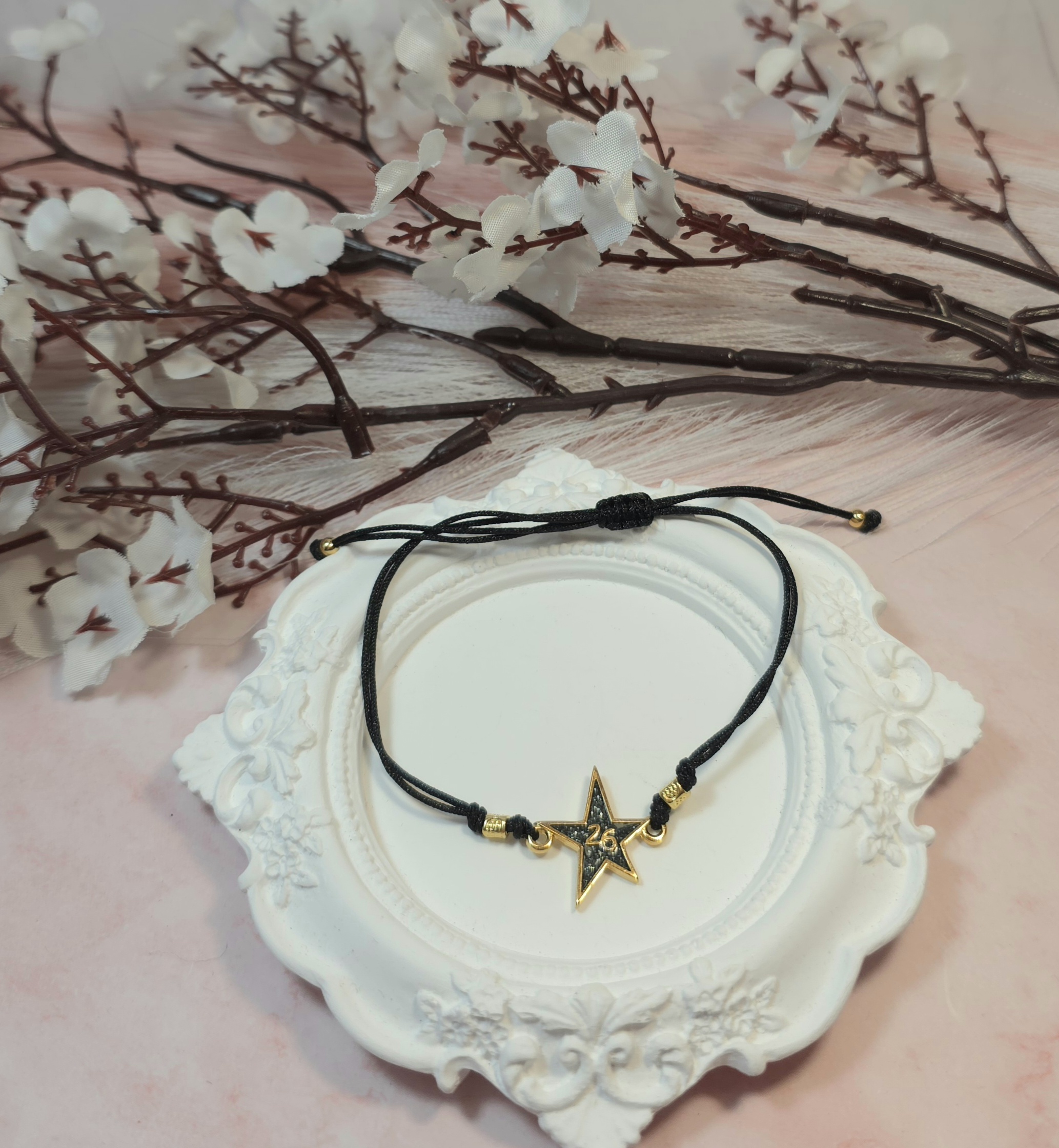Χειροποίητο βραχιόλι γούρι, από επίχρυσο στοιχείο με γκρι αστέρι από σμάλτο και το 26 πάνω. Είναι υποαλλεργικό. Έχει αυξομείωση.