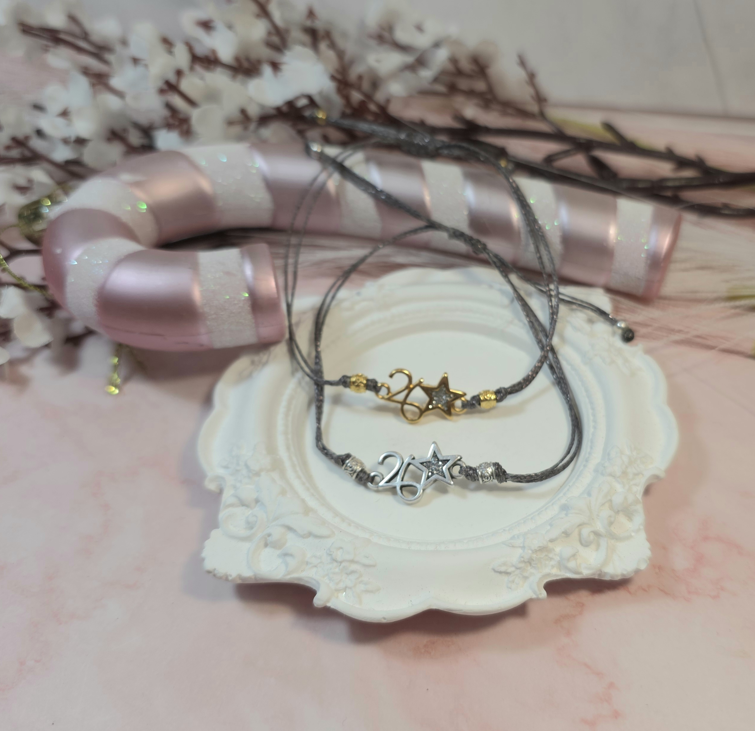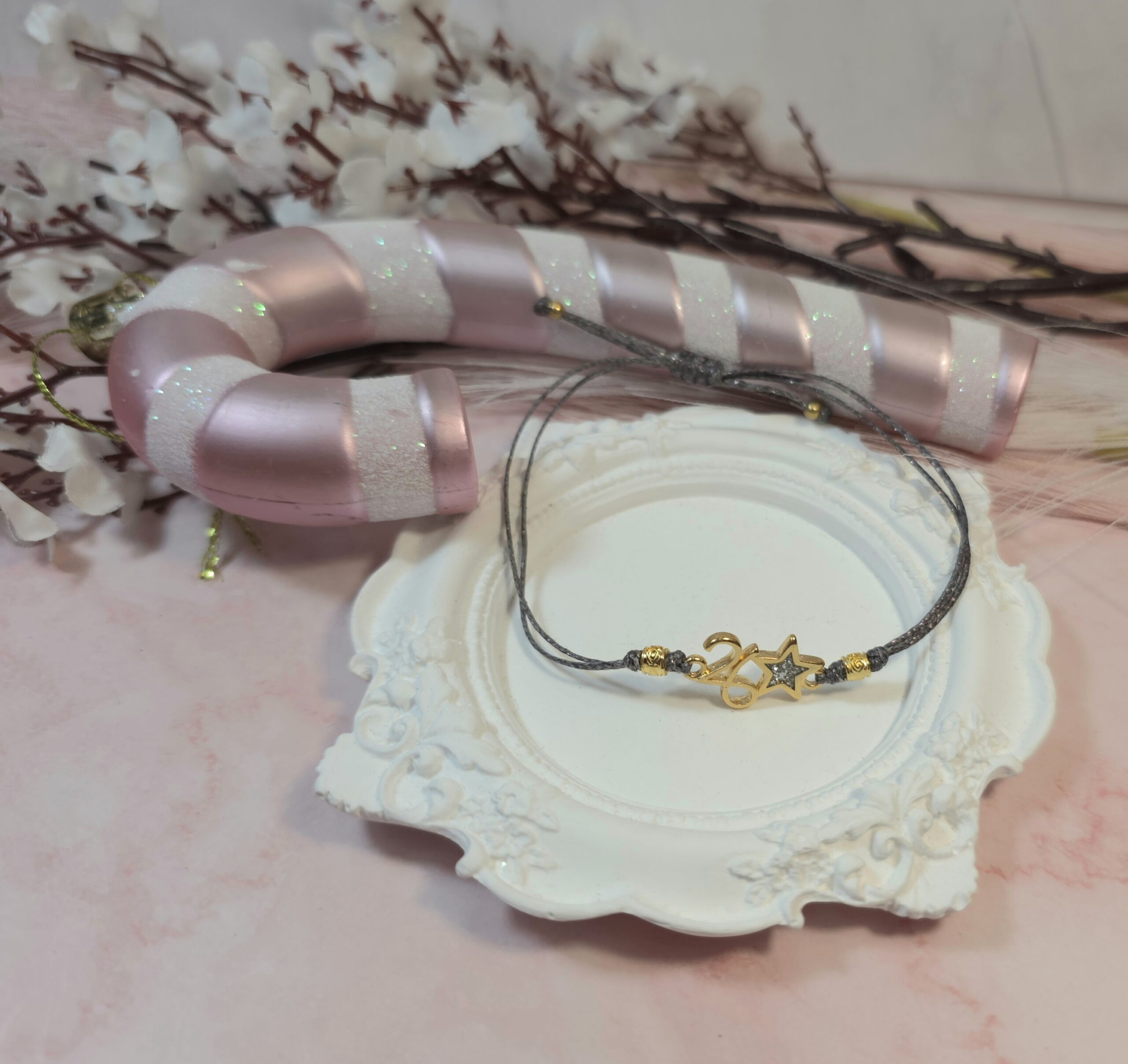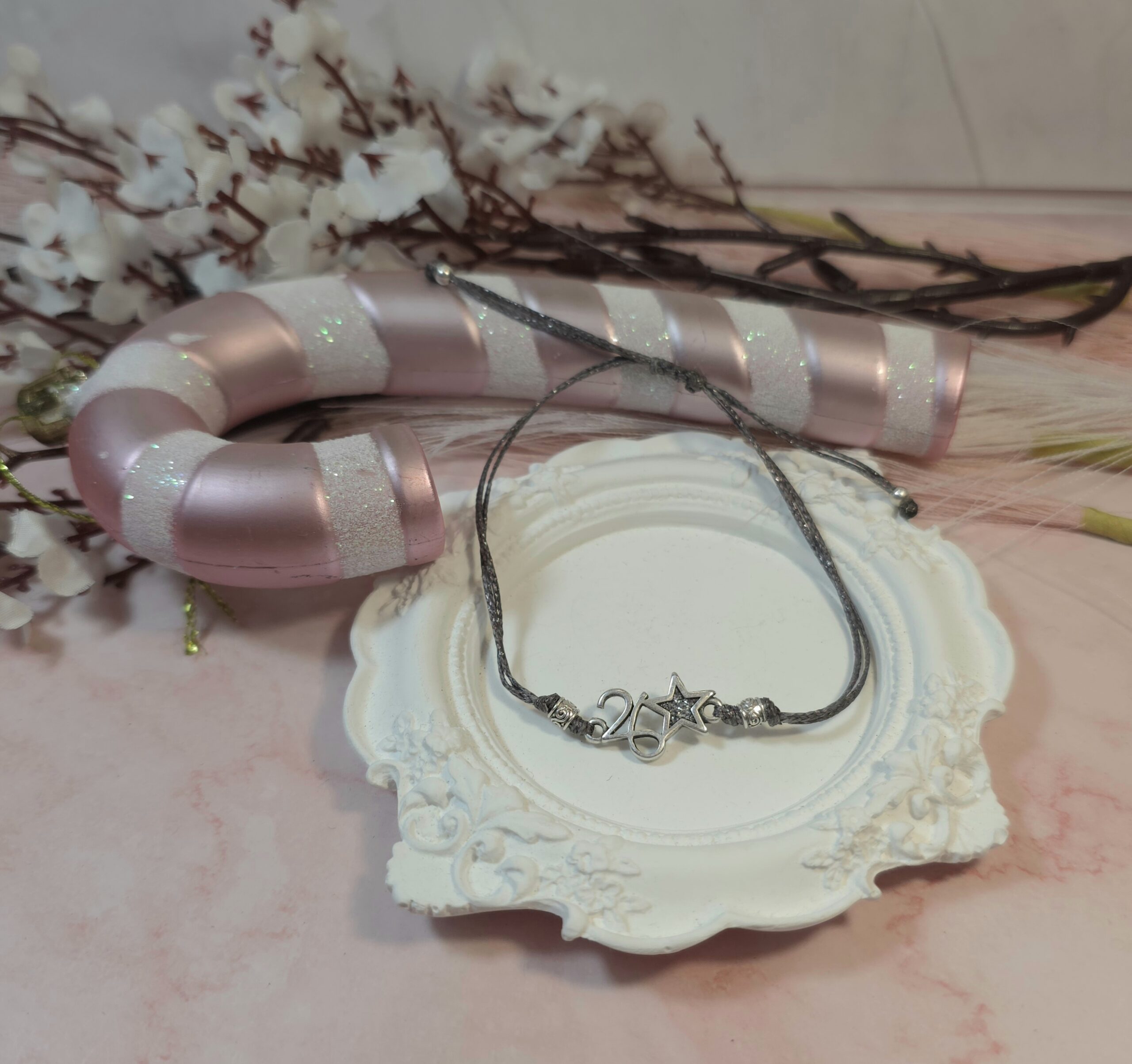 Χειροποίητο βραχιόλι γούρι, από επάργυρο ή επίχρυσο στοιχείο με γκρι αστέρι από σμάλτο και το 26 πάνω. Είναι υποαλλεργικό. Έχει αυξομείωση.