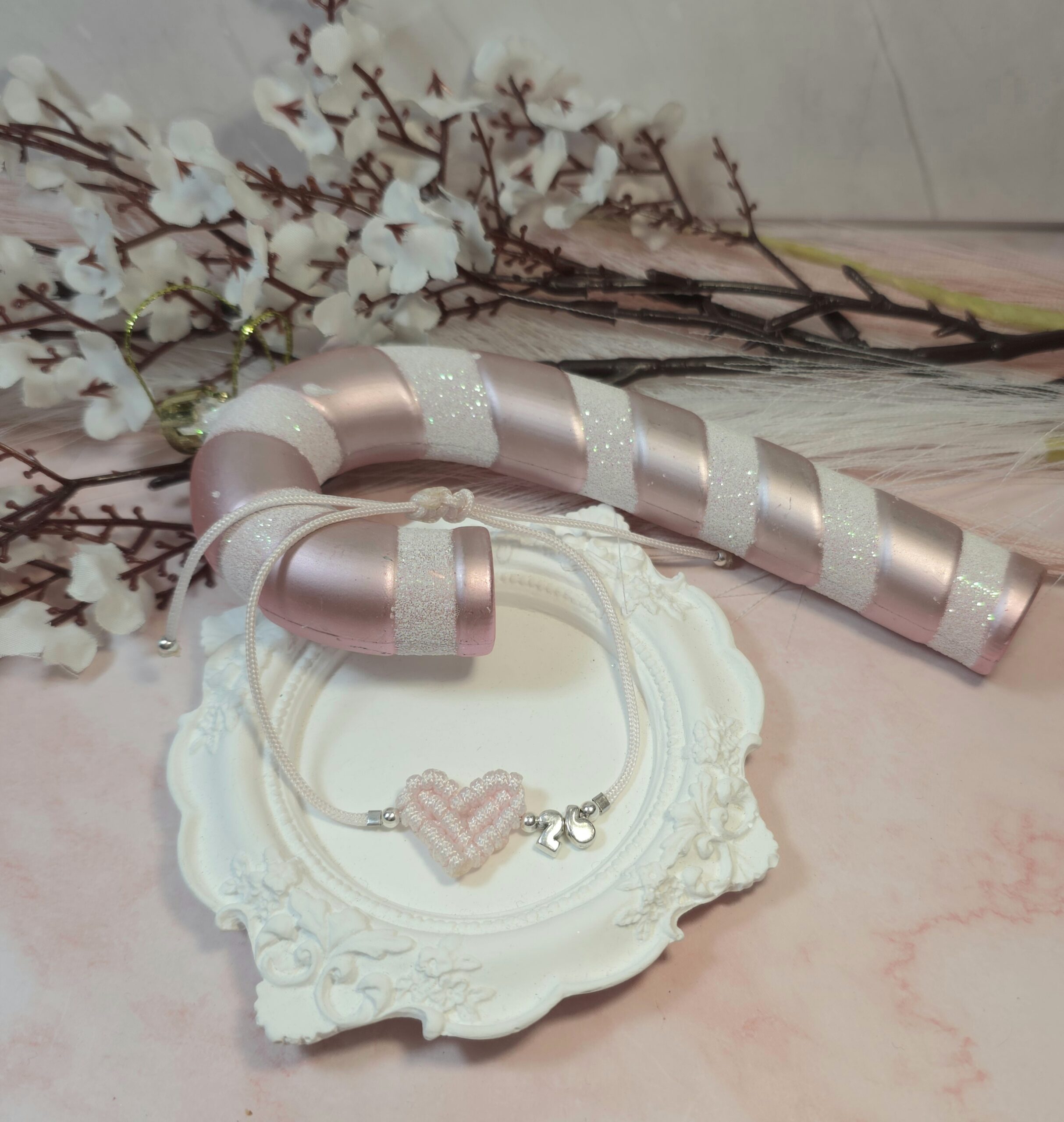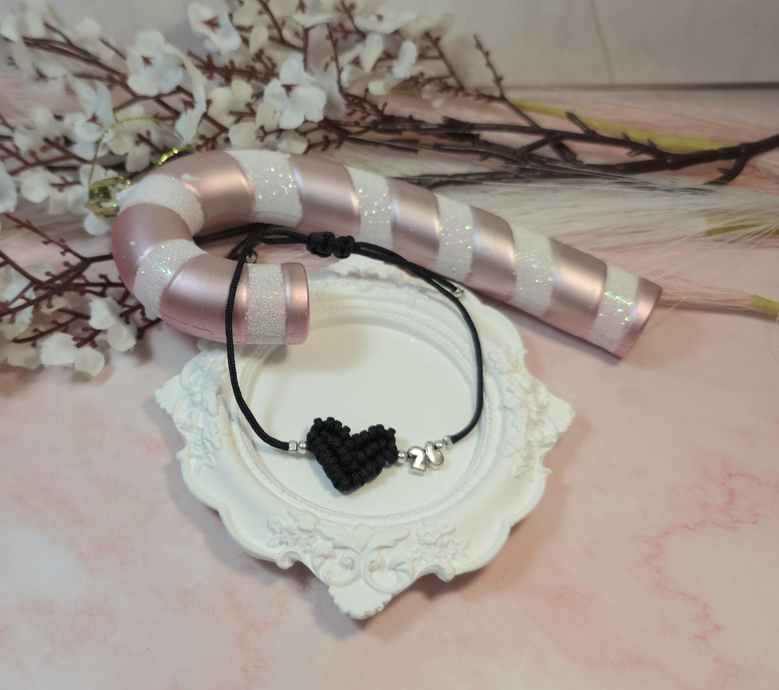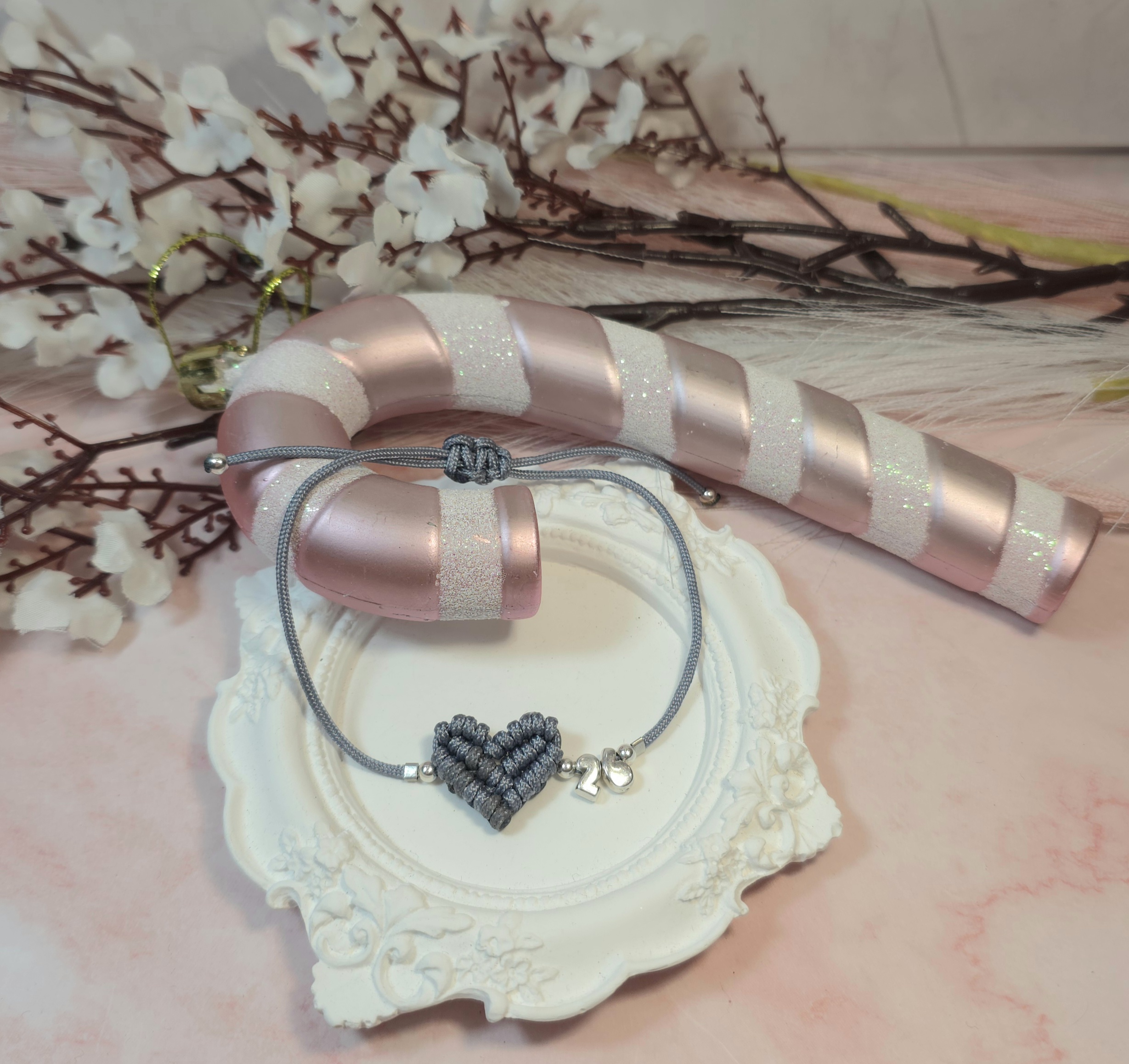 Χειροποίητο βραχιόλι γούρι με καρδιά με την τεχνική μακραμέ και επάργυρο το 26. Είναι υποαλλεργικό. Έχει αυξομείωση.