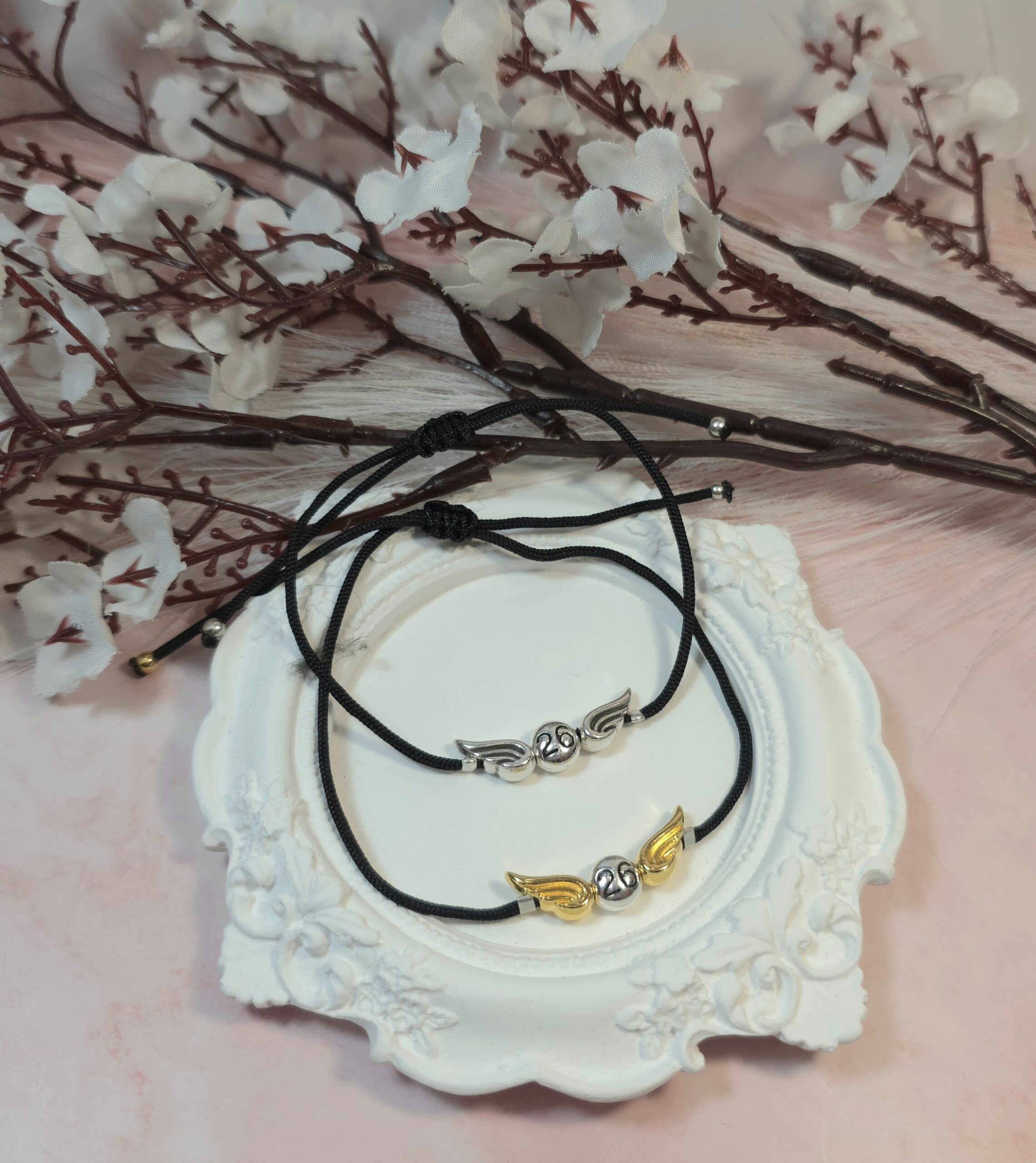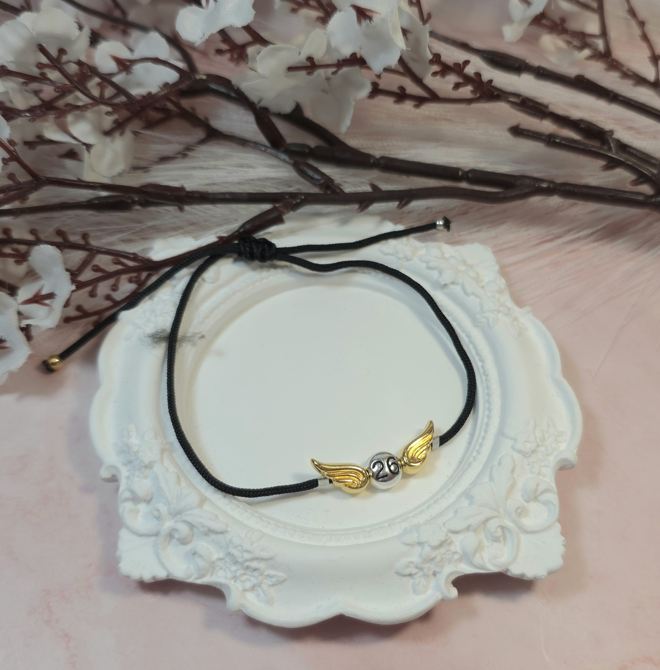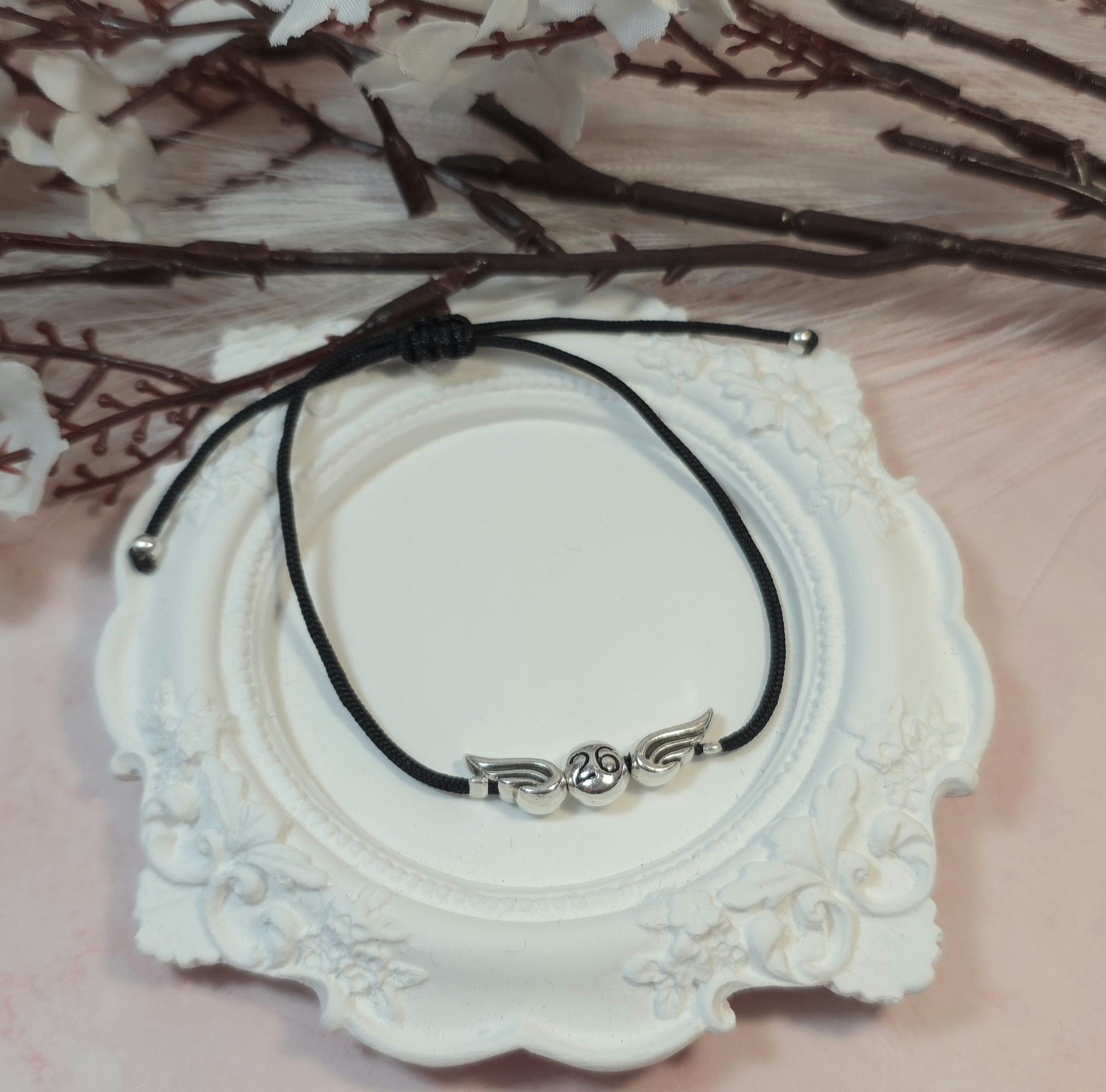 Χειροποίητο βραχιόλι γούρι, από επάργυρα ή επίχρυσα στοιχείο στρογγυλό με το 26 πάνω και φτερά αγγέλου. Είναι υποαλλεργικό. Έχει αυξομείωση.