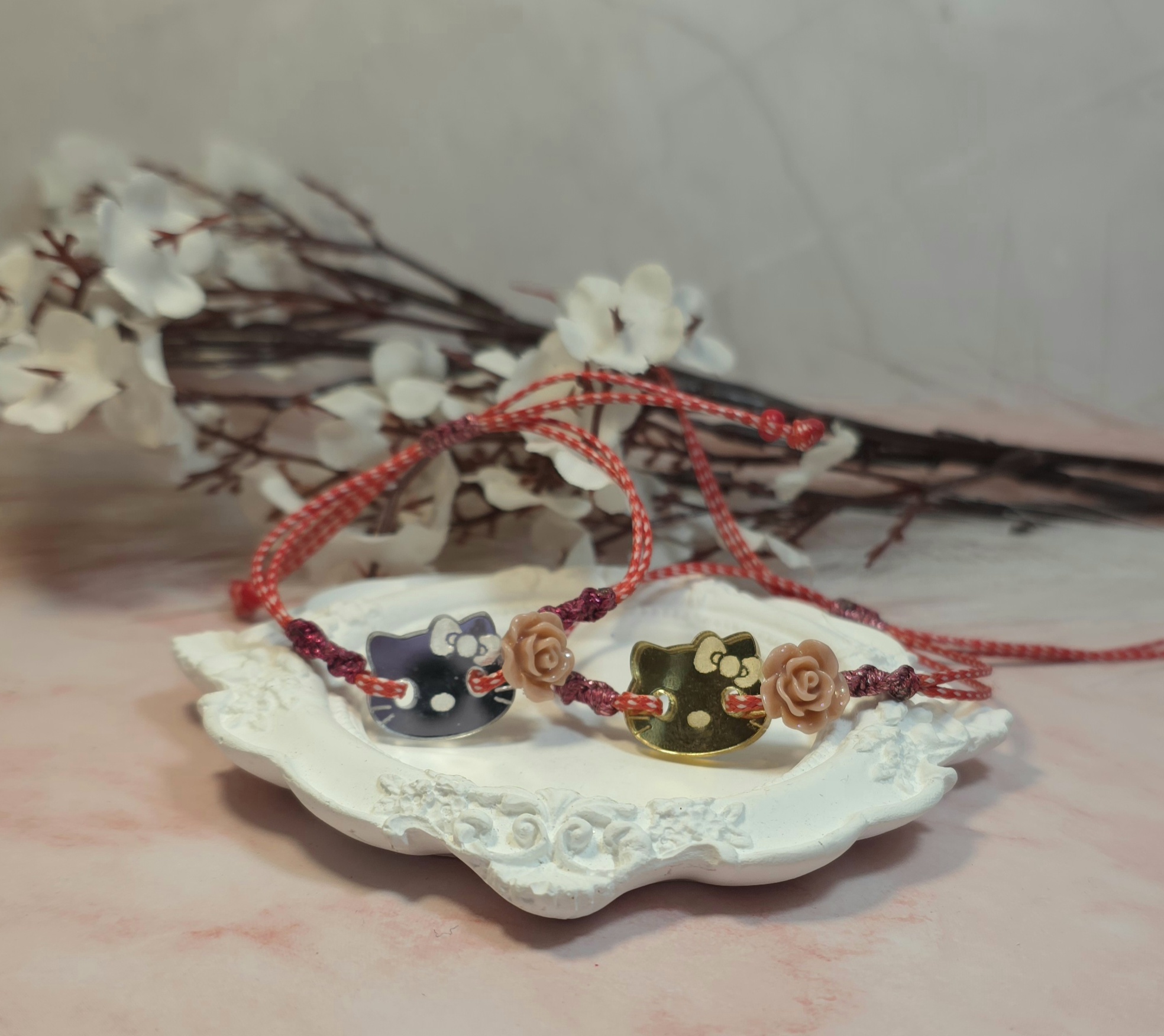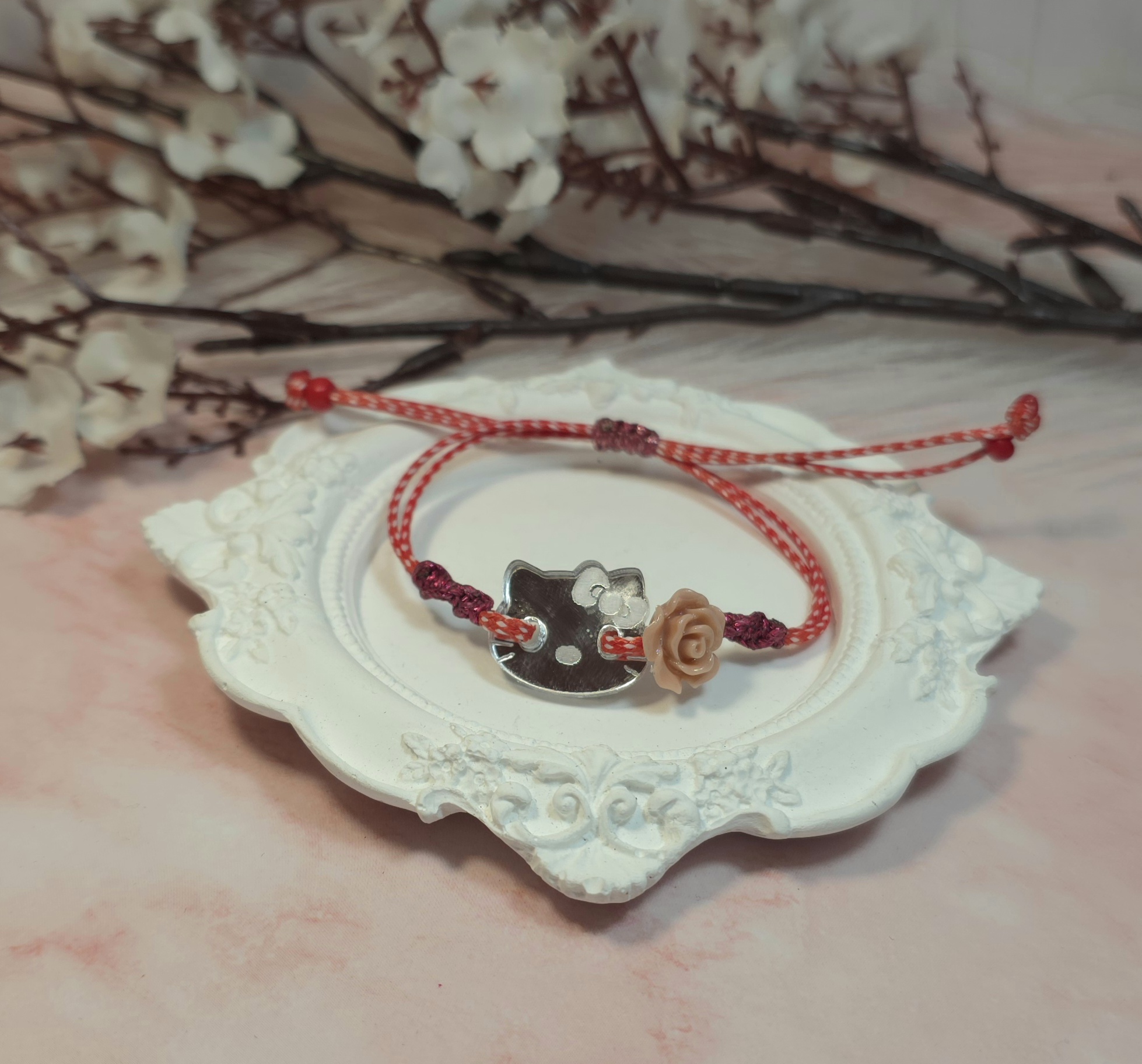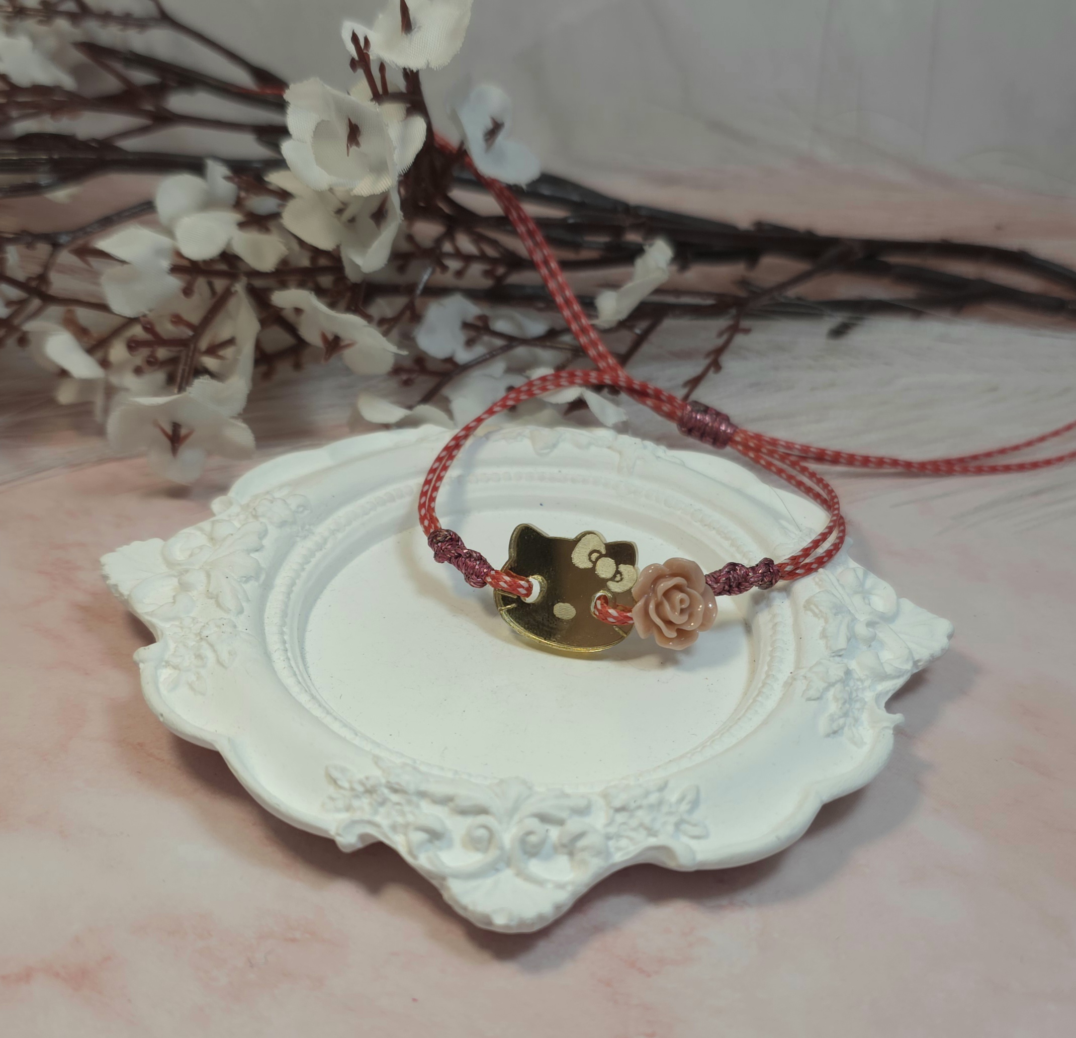 Χειροποίητο μαρτάκι με plexiglass στοιχείο Hello Kiity και ματάκι. Έχει αυξομείωση. Είναι υποαλλεργικό.