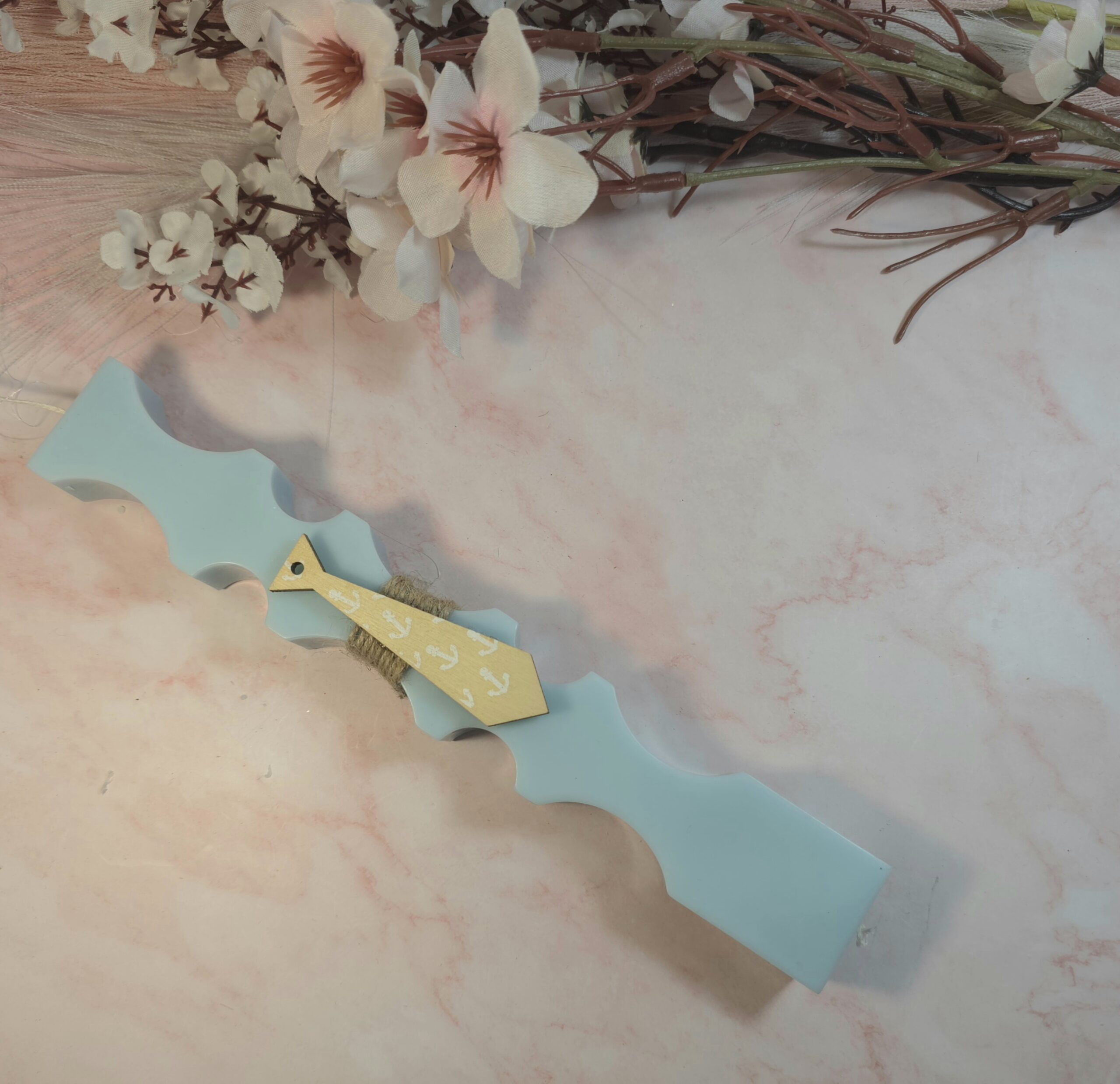 Φυτική χειροποίητη αρωματική λαμπάδα, από κερί σόγιας και άρωμα χωρίς χημικά, σε σχήμα καμπυλωτό και ξύλινη γραβάτα.