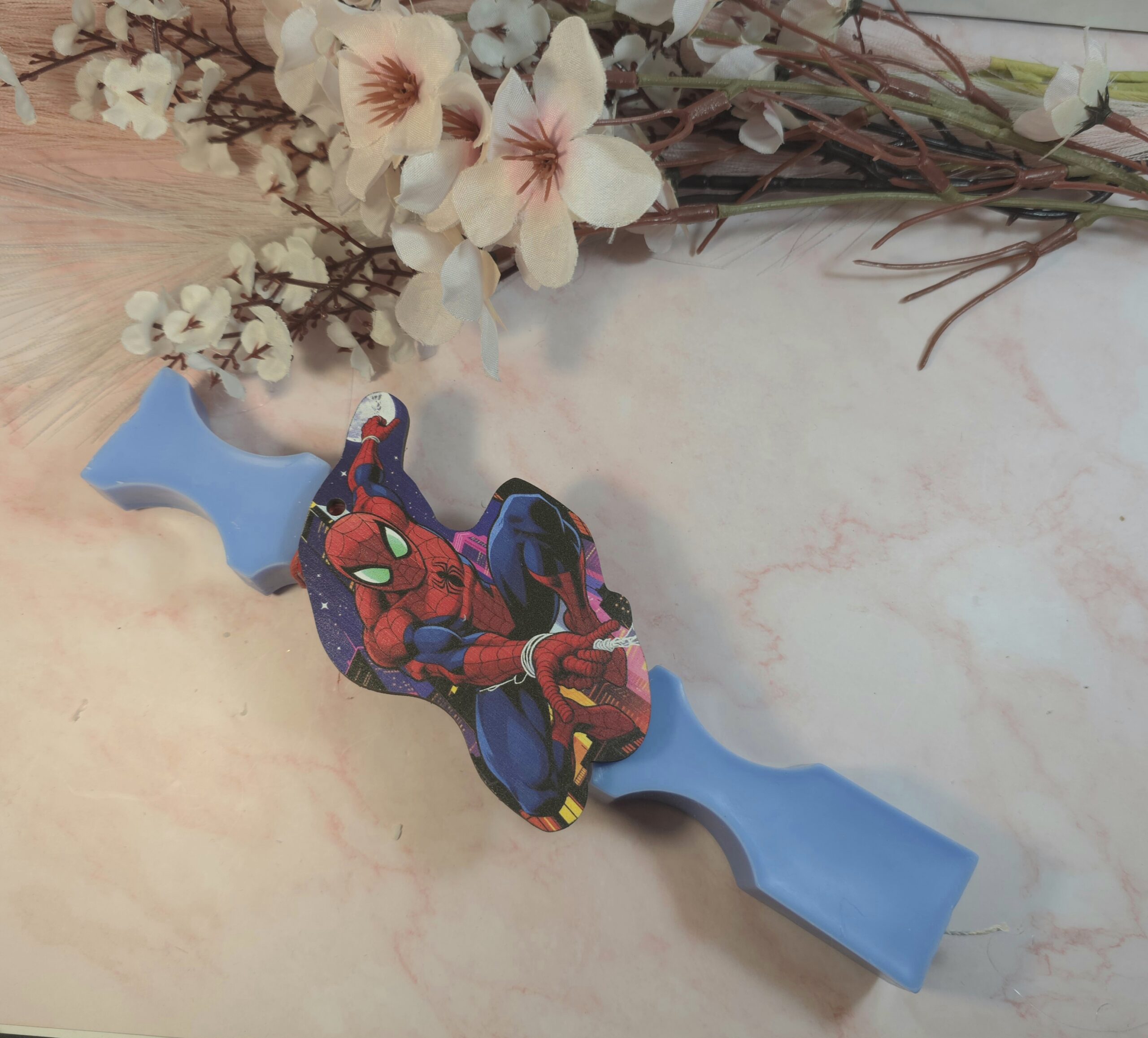 Φυτική χειροποίητη αρωματική λαμπάδα, από κερί σόγιας και άρωμα χωρίς χημικά, σε σχήμα καμπυλωτό και ξύλινο σχέδιο Spiderman.