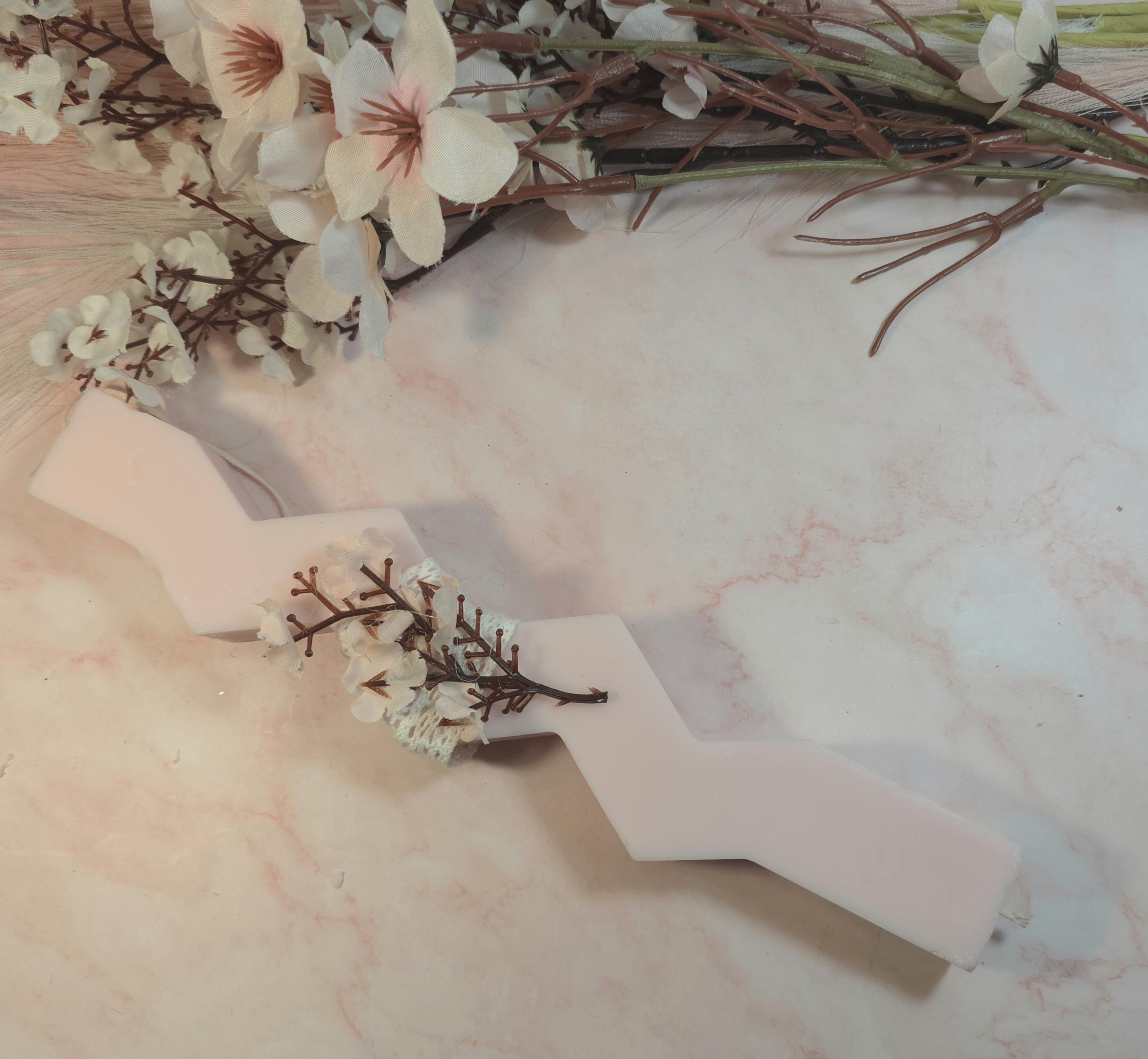 Φυτική χειροποίητη αρωματική λαμπάδα, από κερί σόγιας και άρωμα χωρίς χημικά, σχήμα καμπυλωτό και λουλούδια.