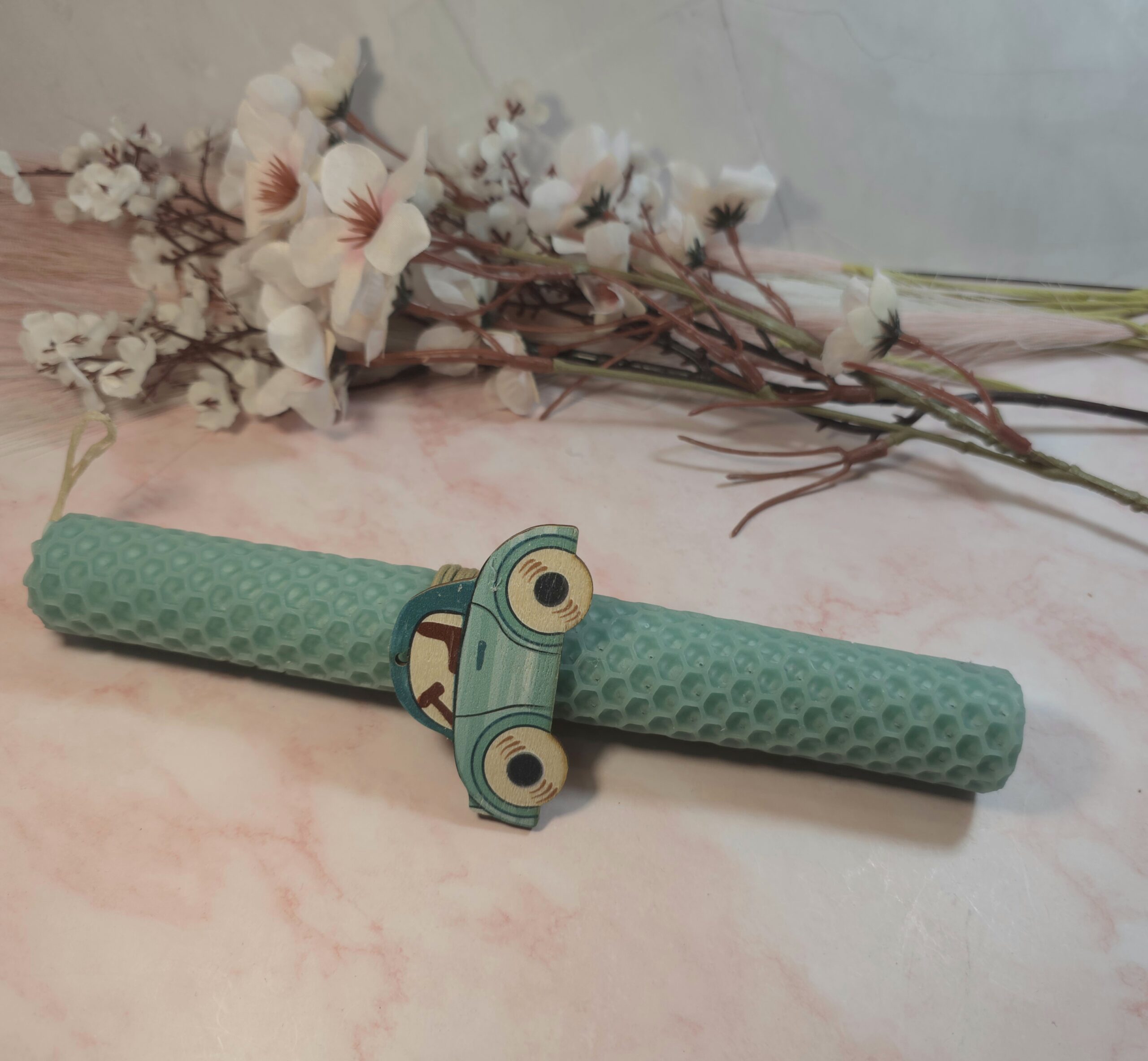 Χειροποίητη λαμπάδα από κηρήθρα μελισσών 20cm, με ξύλινο σκαραβαίο.