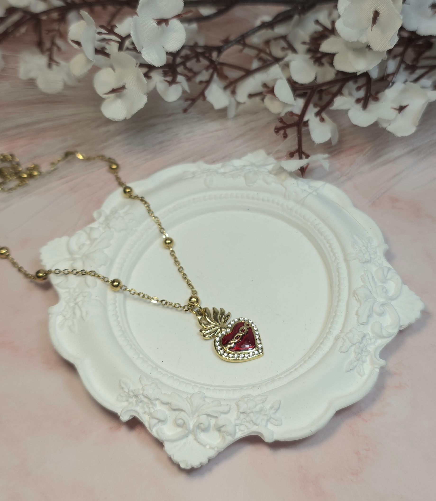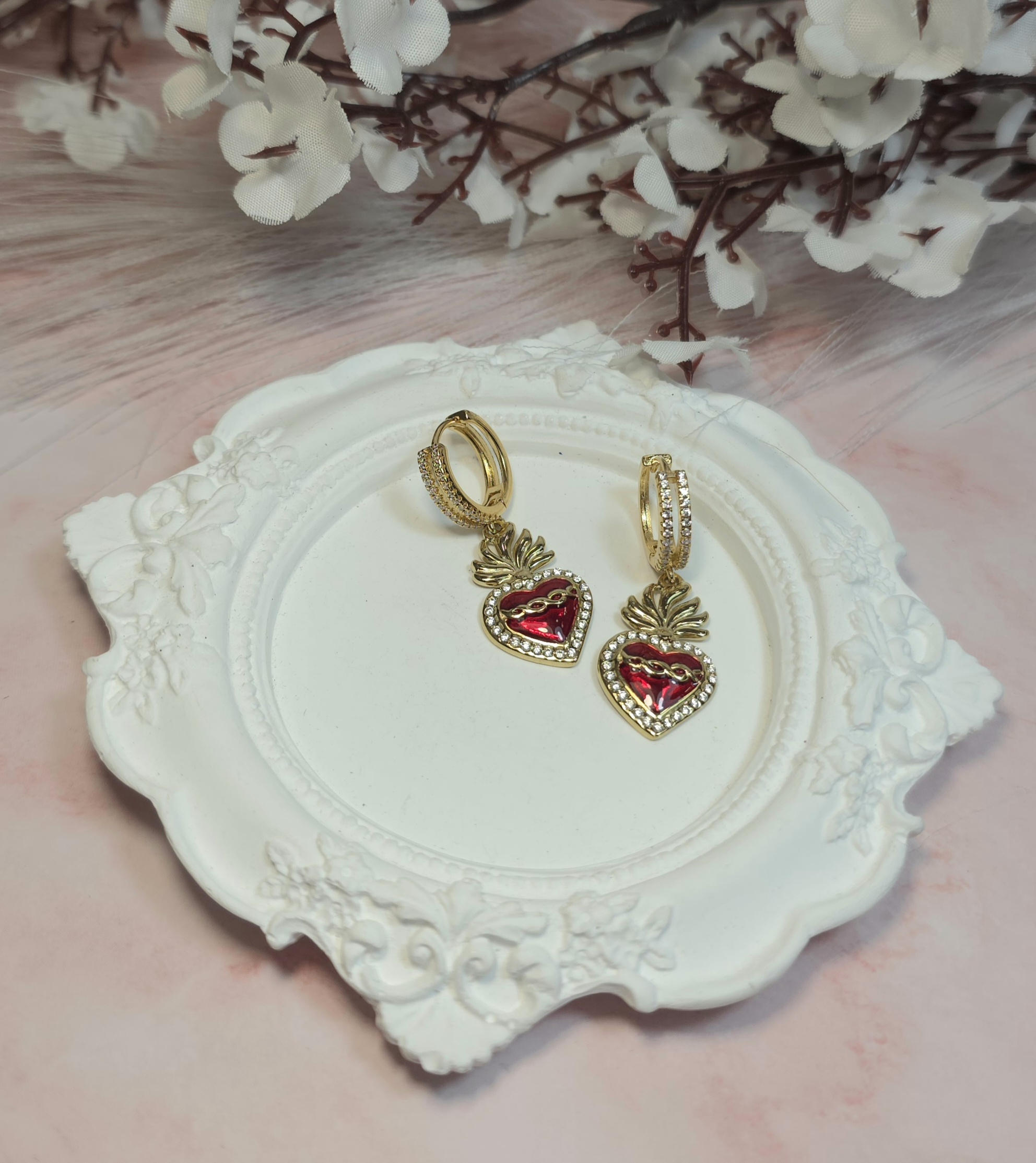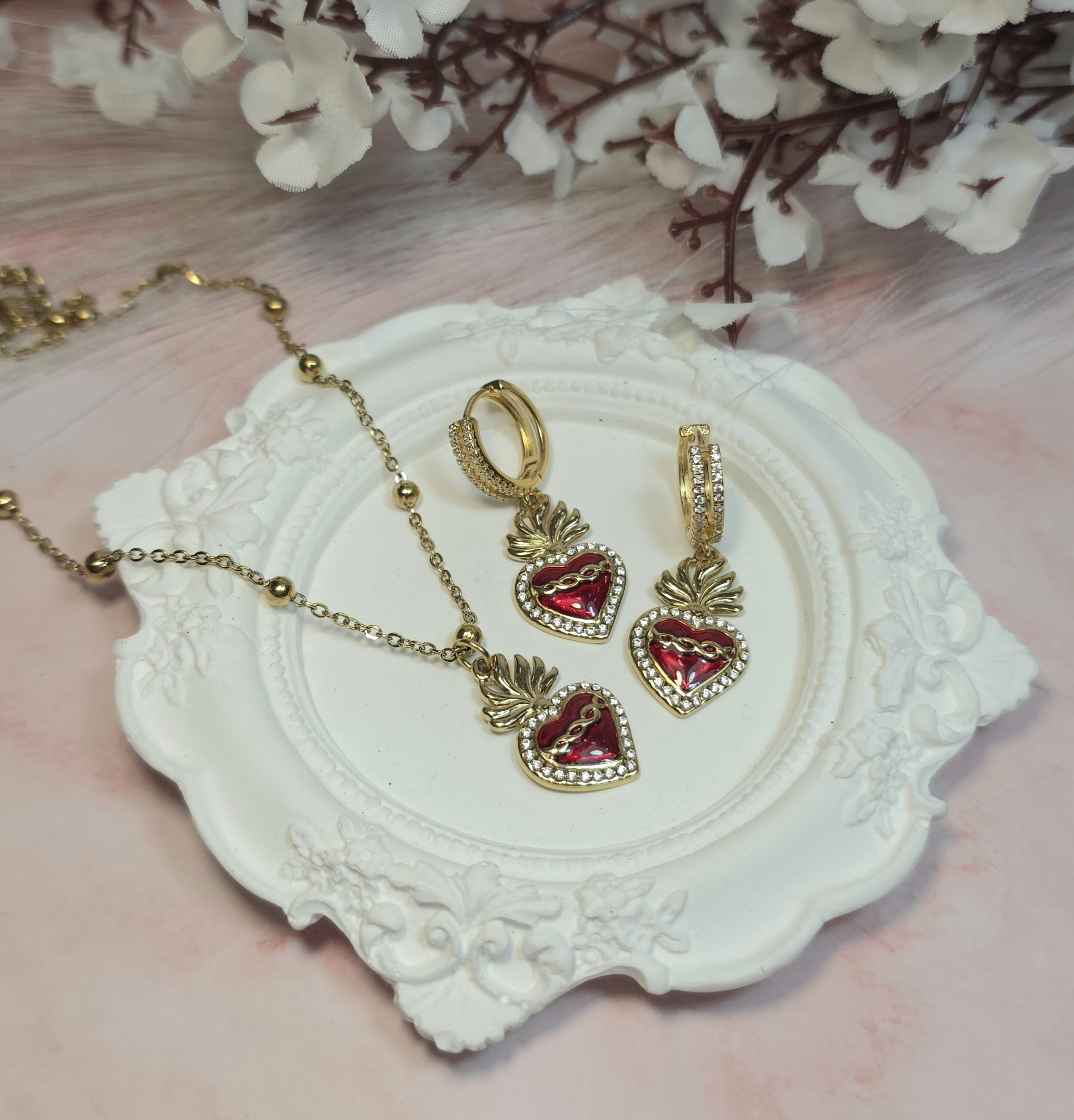 Ατσάλινο σετ σε χρυσό χρώμα, αποτελούμενο από ατσάλινο κολιέ και σκουλαρίκια από επίχρυσο κρίκο με ζιργκόν και ατσάλινη καρδιά με ζιργκόν. Έχουν αυξομείωση. Είναι υποαλλεργικά.
