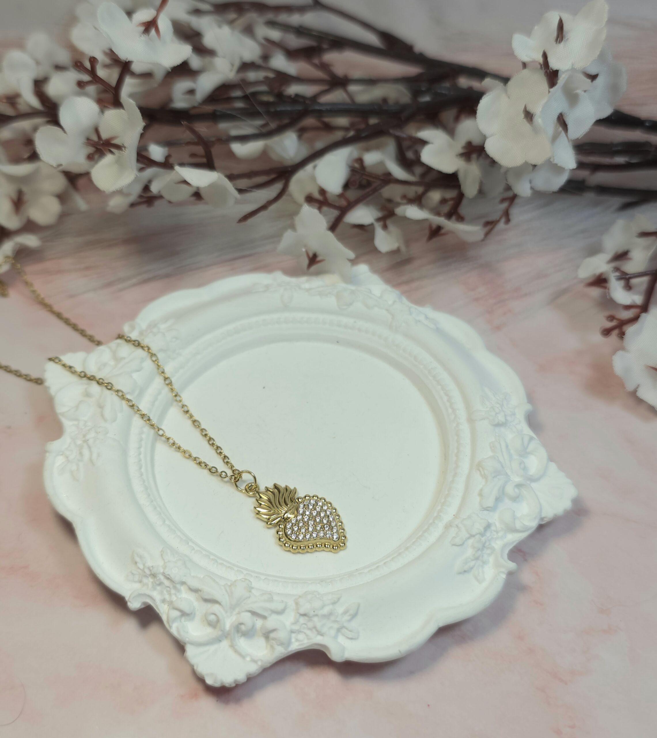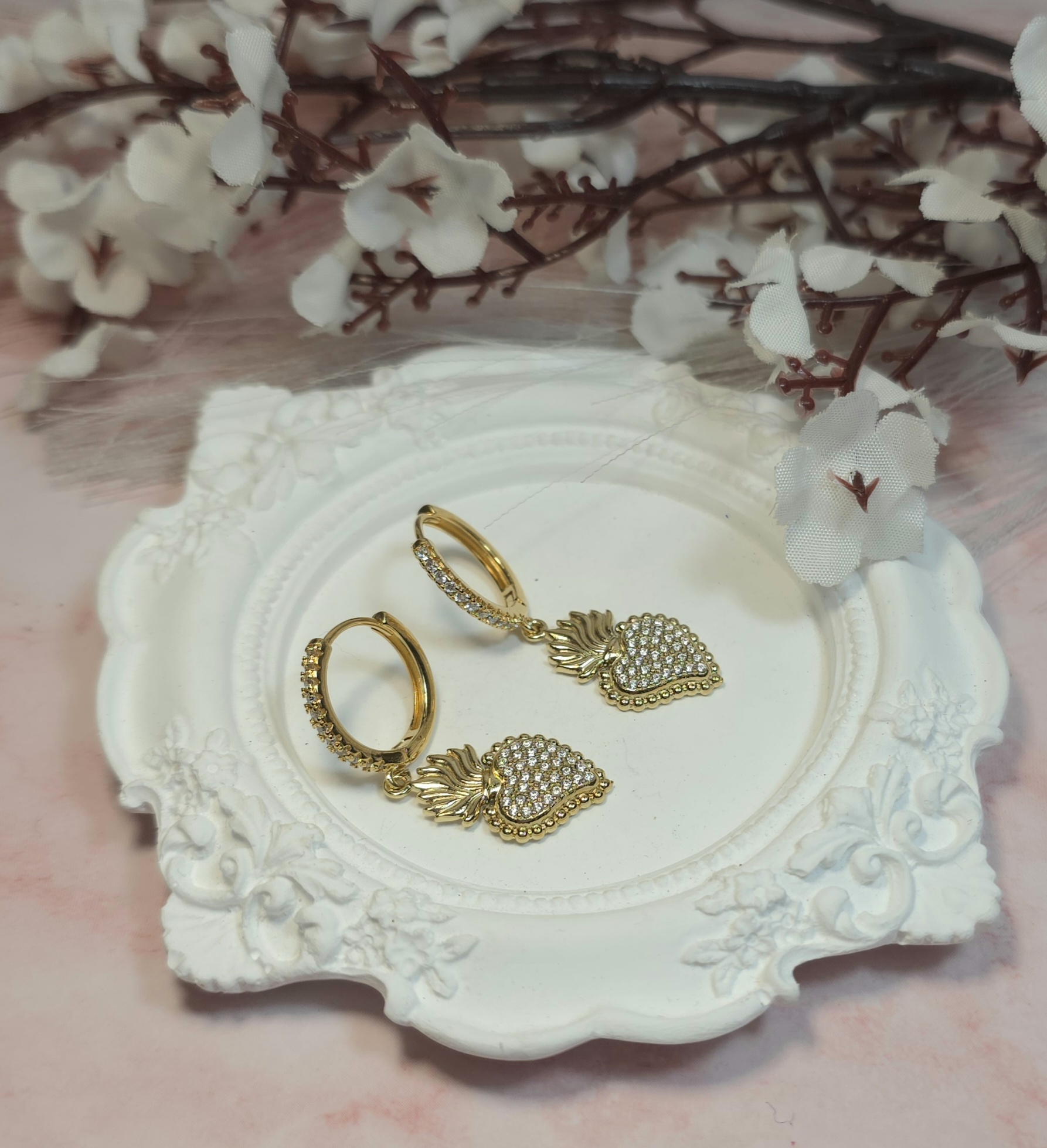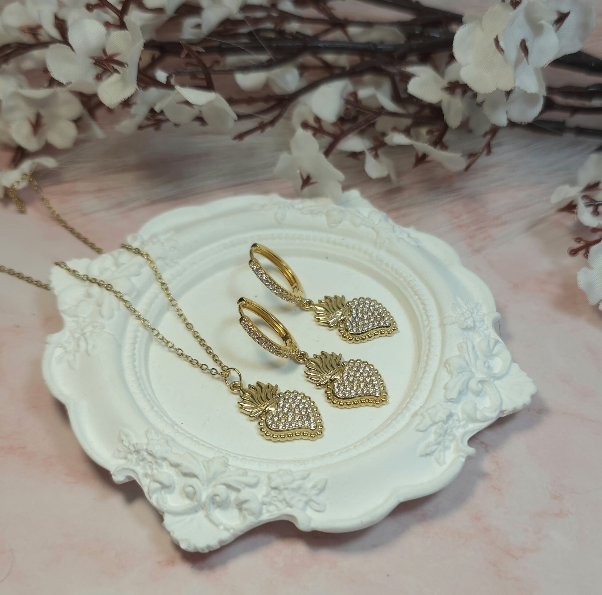 Ατσάλινο σετ σε χρυσό χρώμα, αποτελούμενο από ατσάλινο κολιέ και σκουλαρίκια από επάργυρο κρίκο με ζιργκόν και ατσάλινη καρδιά με ζιργκόν. Έχουν αυξομείωση. Είναι υποαλλεργικά.