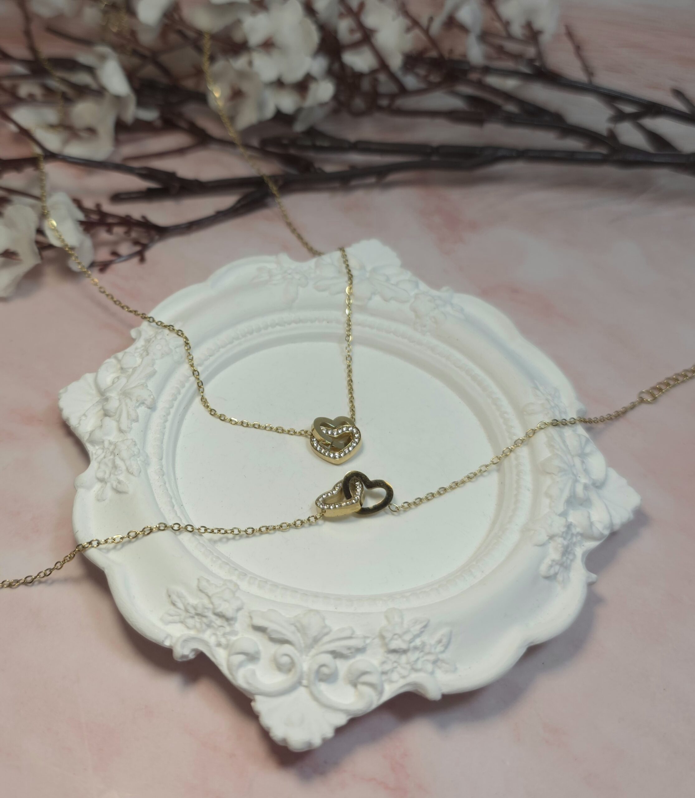 Ατσάλινο σετ σε χρυσό χρώμα, αποτελούμενο από κολιέ και βραχιόλι. Έχουν αυξομείωση. Είναι υποαλλεργικά.