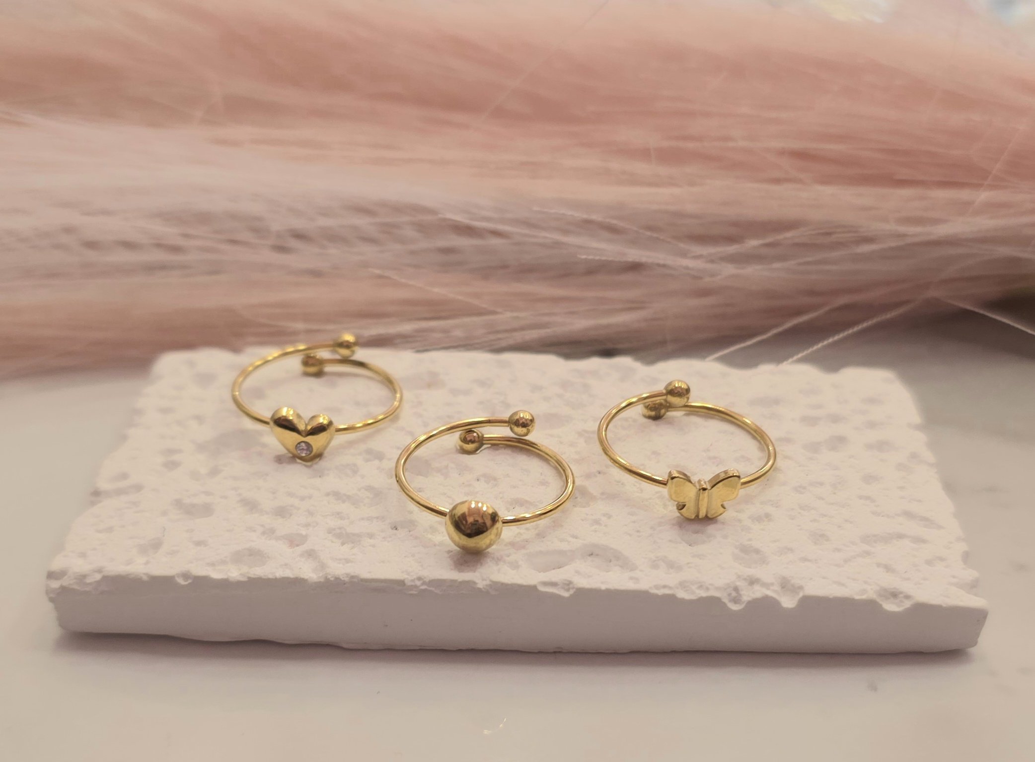 Σετ από 3 ατσάλινα δαχτυλίδια. Είναι υποαλλεργικά. Ανοιγοκλείνουν. Υπάρχει σε χρυσό χρώμα.
