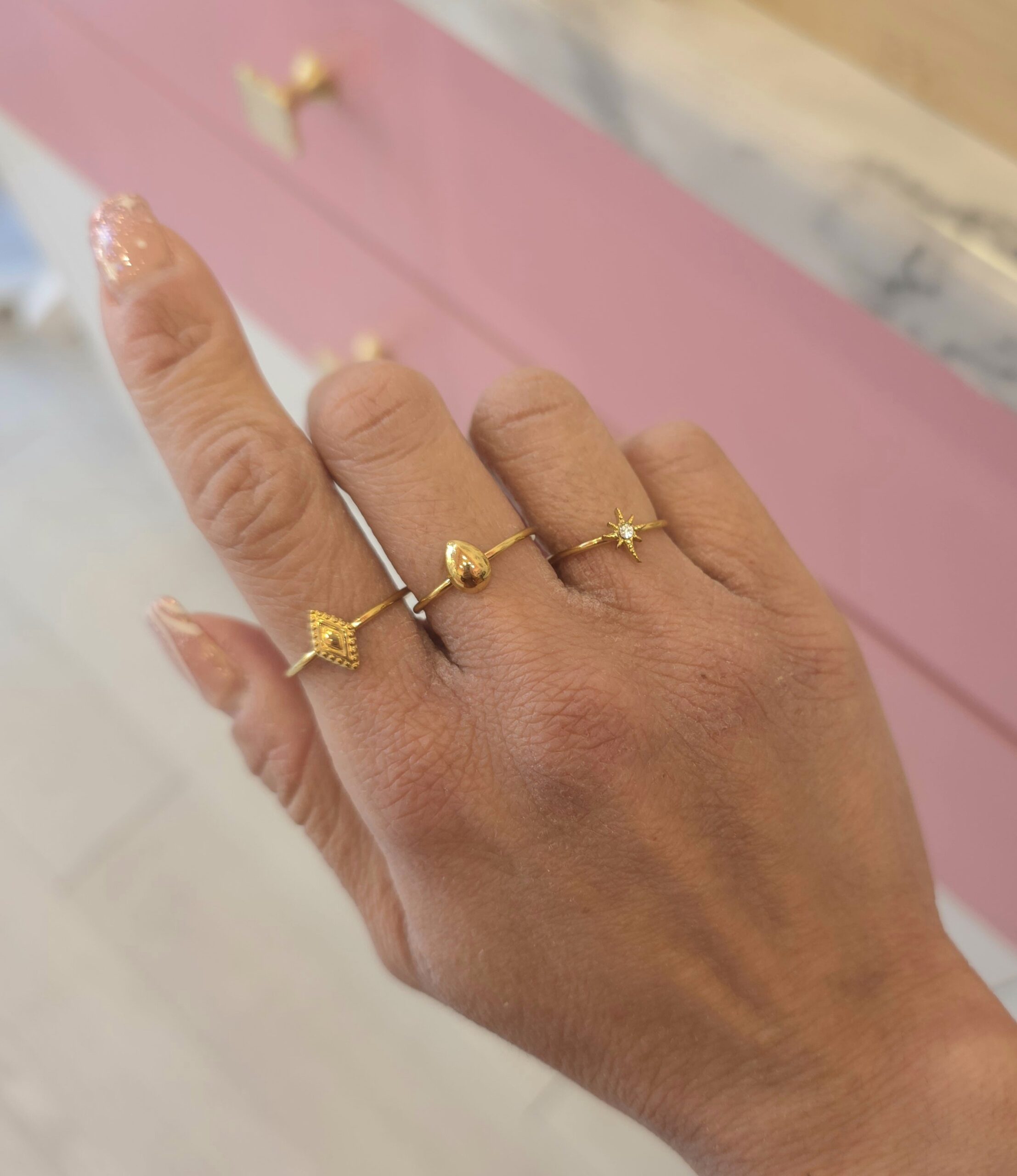 Σετ από 3 ατσάλινα δαχτυλίδια. Είναι υποαλλεργικά. Ανοιγοκλείνουν. Υπάρχει σε χρυσό χρώμα.