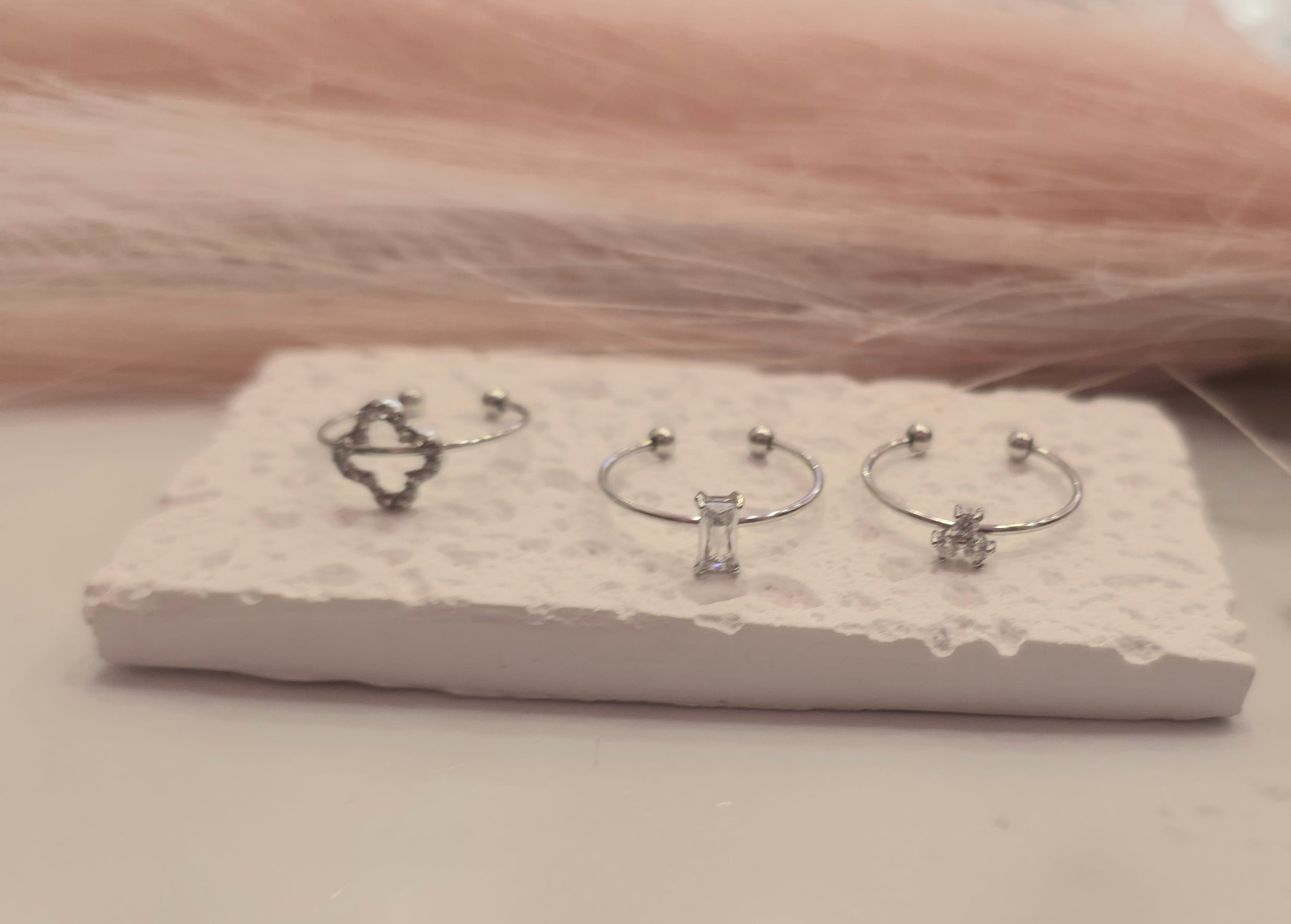 Σετ από 3 ατσάλινα δαχτυλίδια. Είναι υποαλλεργικά. Ανοιγοκλείνουν. Υπάρχει σε ασημί χρώμα.