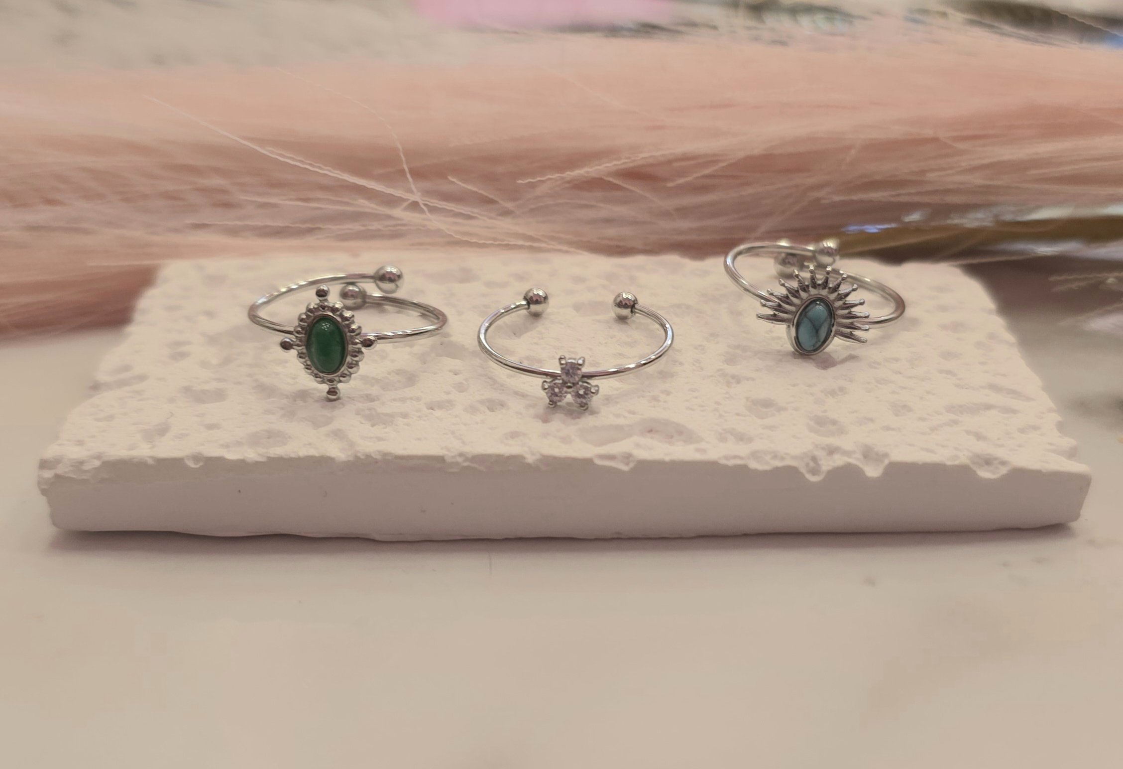Σετ από 3 ατσάλινα δαχτυλίδια. Είναι υποαλλεργικά. Ανοιγοκλείνουν. Υπάρχει σε ασημί χρώμα.