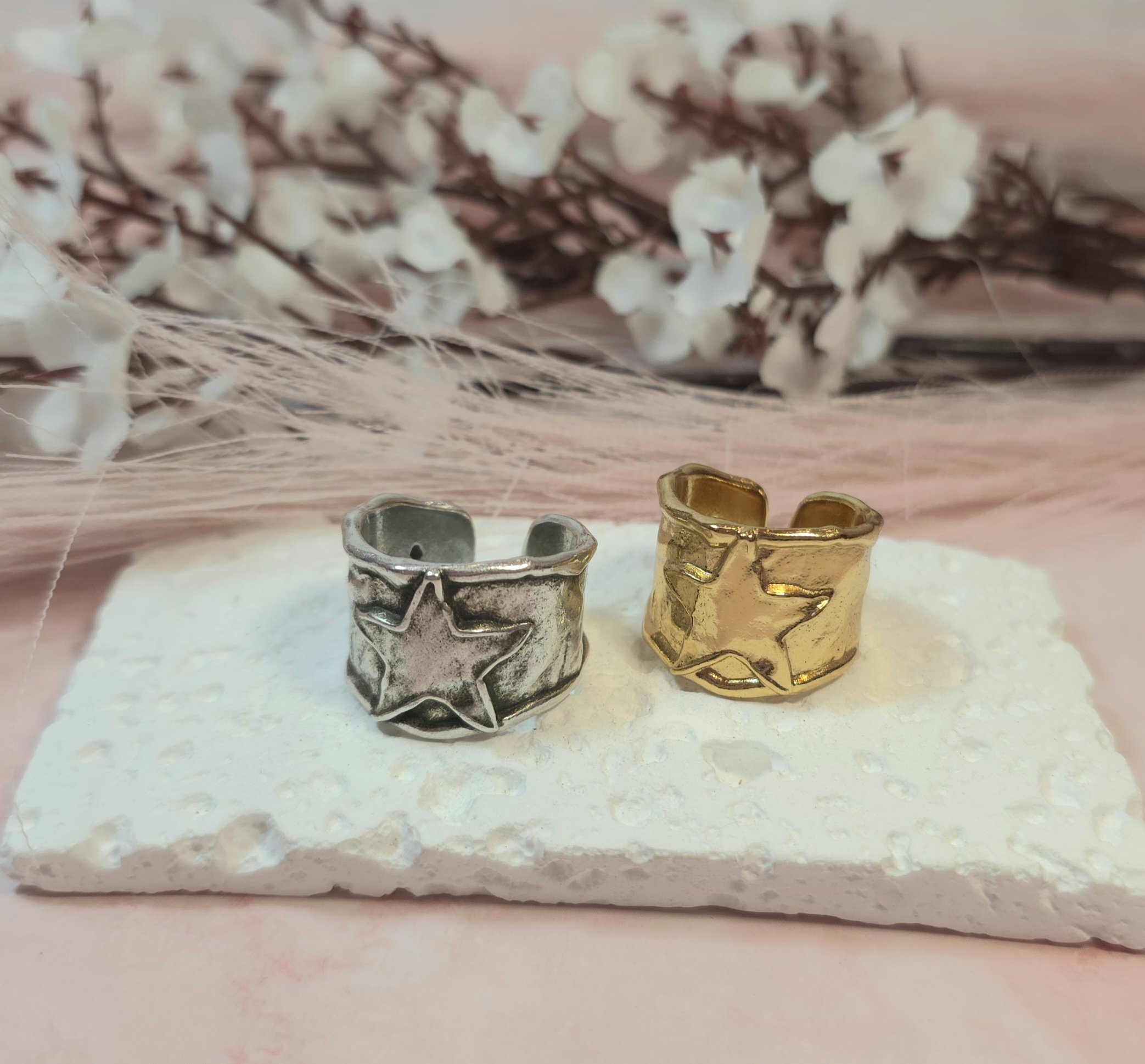 Επάργυρο δαχτυλίδι . Υπάρχει σε ασημί και χρυσό χρώμα. Είναι υποαλλεργικό. Ανοιγοκλείνει.