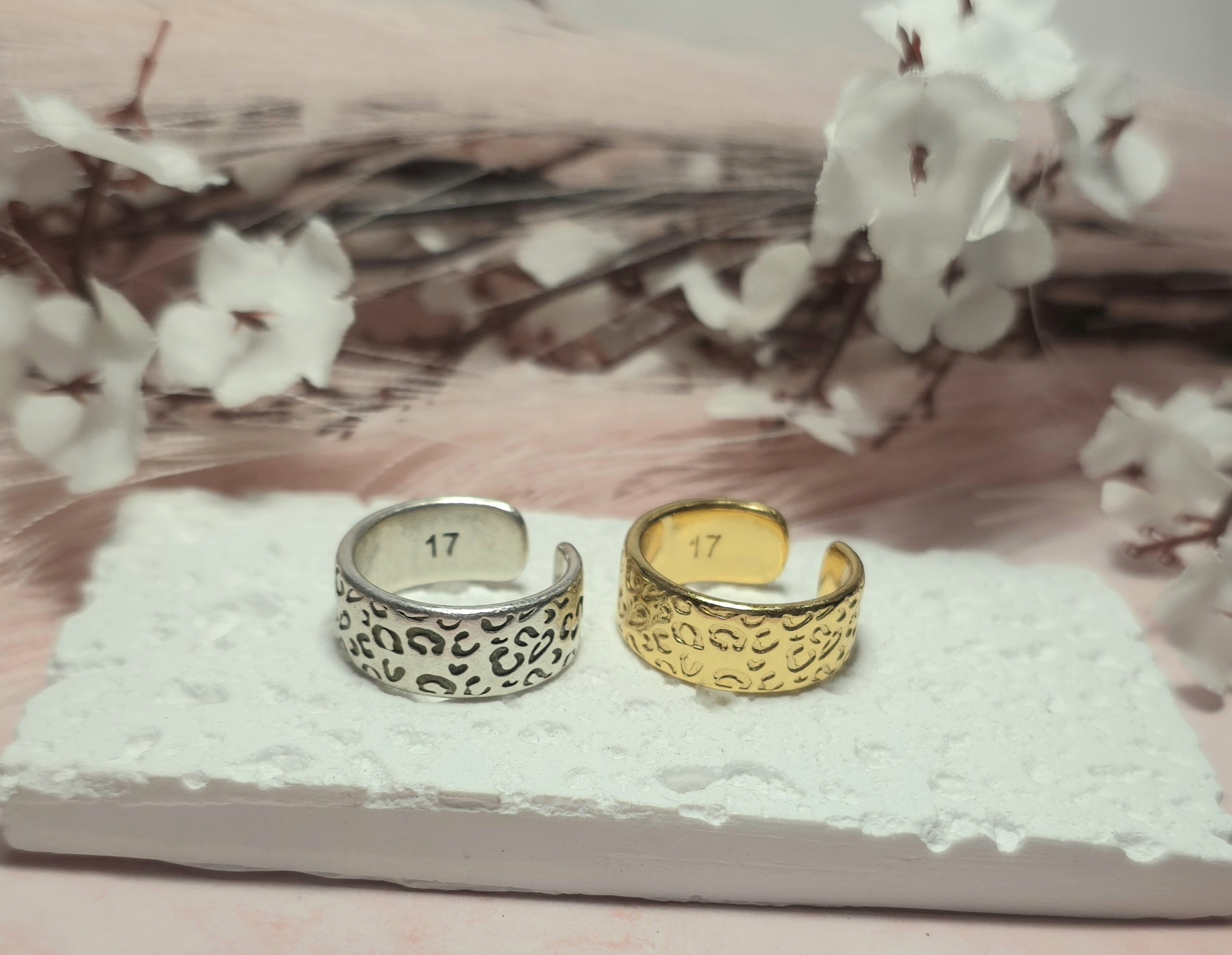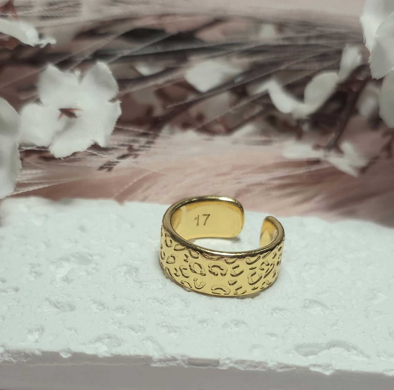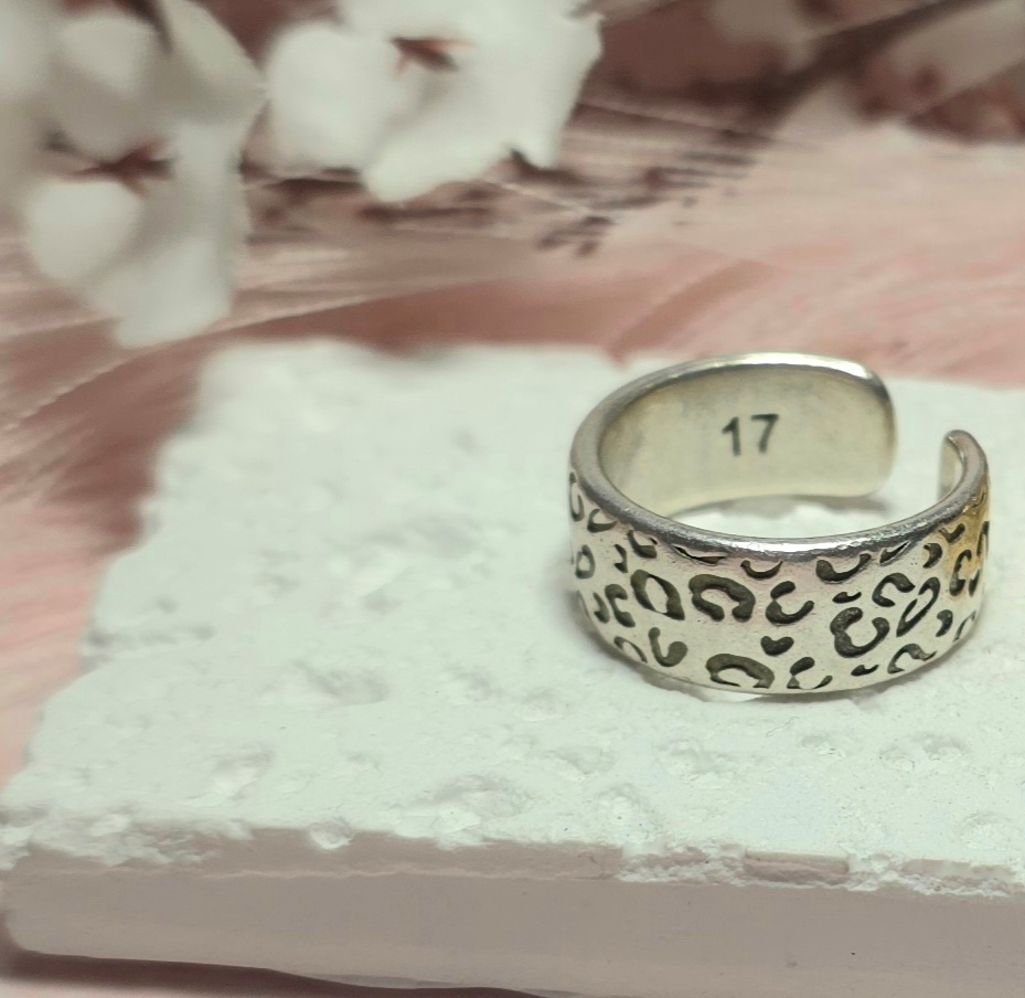 Επάργυρο δαχτυλίδι με animal print σχέδιο. Είναι υποαλλεργικό. Ανοιγοκλείνει.