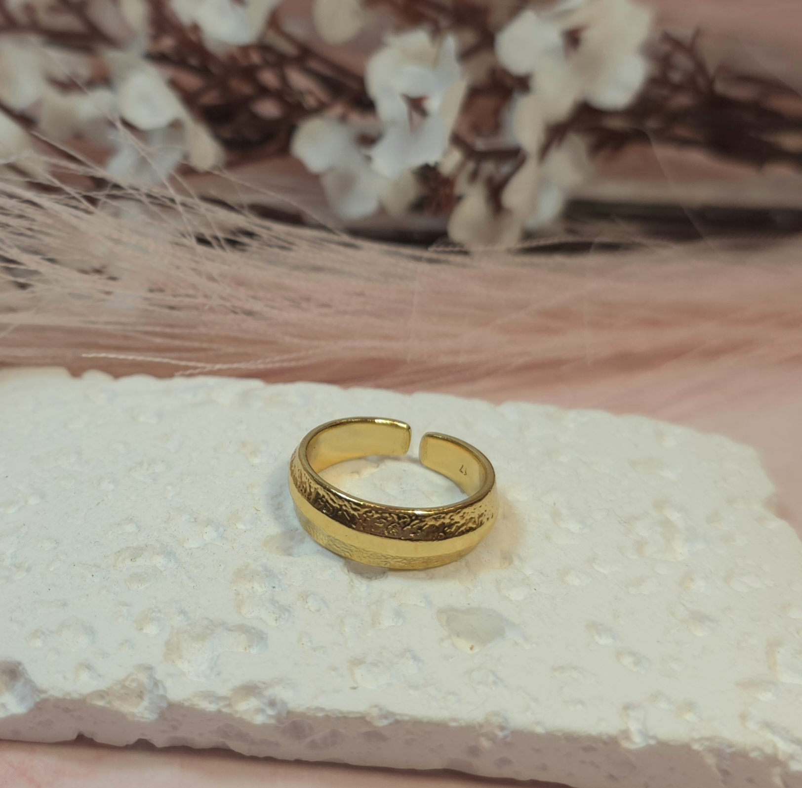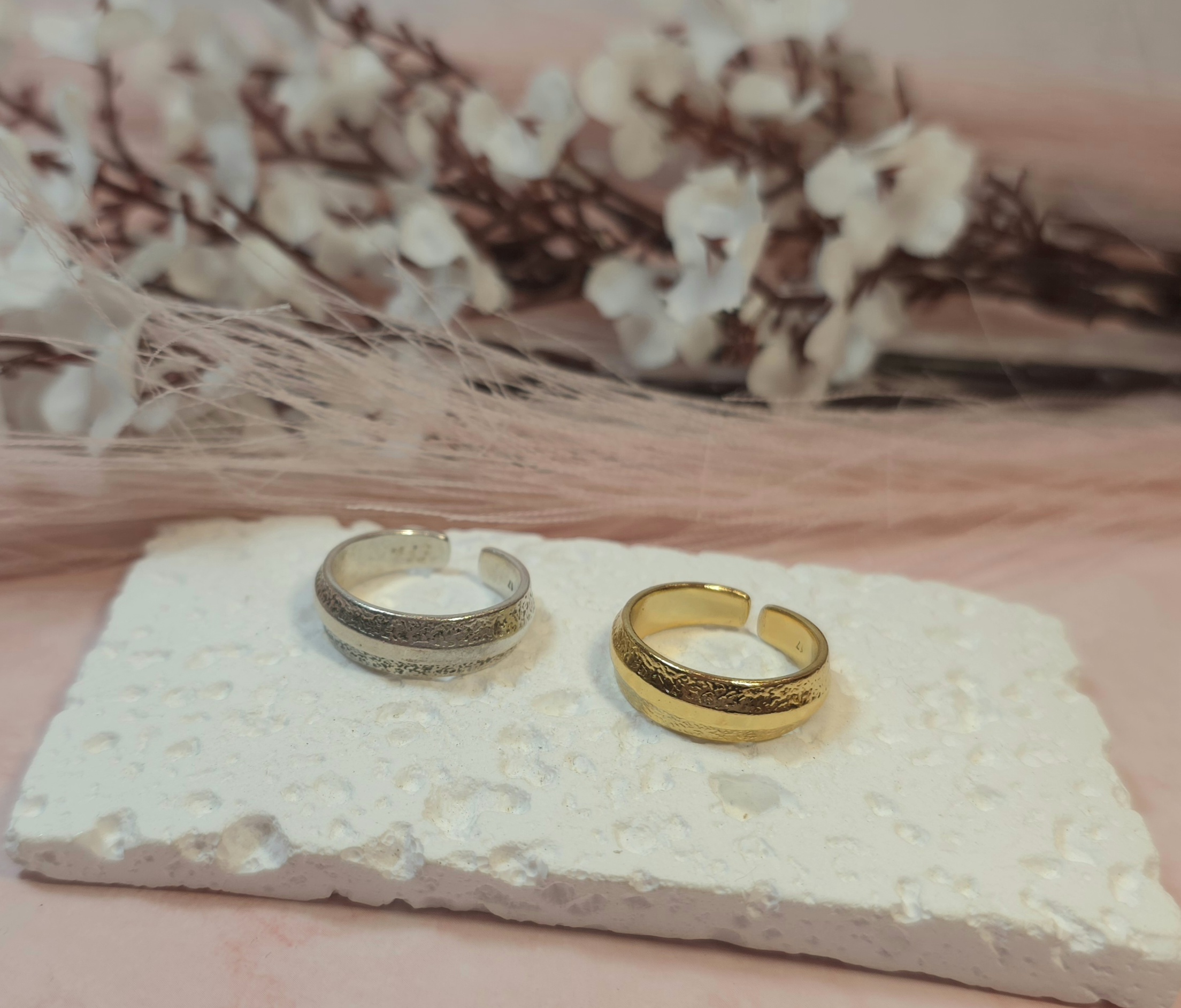 Επάργυρο ή επίχρυσο δαχτυλίδι. Υπάρχει σε ασημί και χρυσό χρώμα. Ανοιγοκλείνει. Είναι υποαλλεργικό.