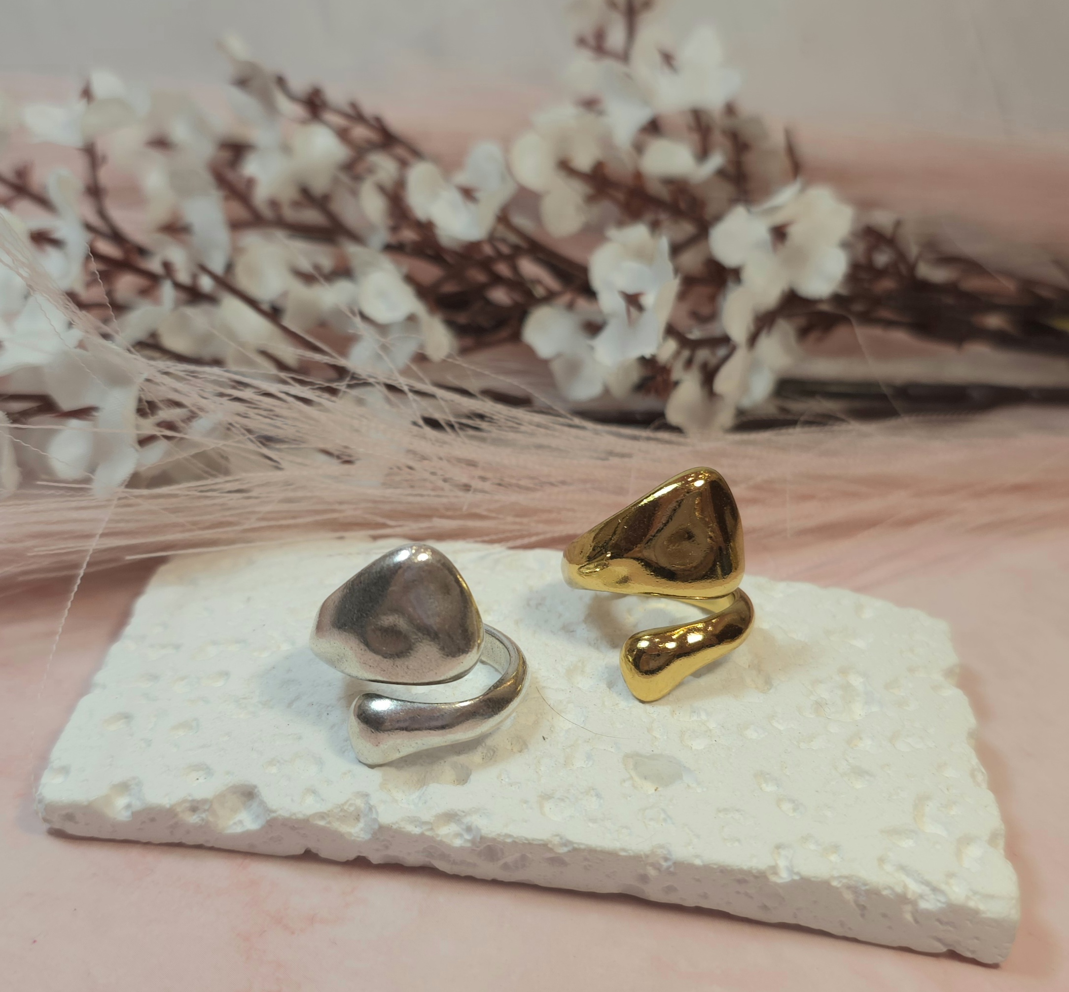 Επάργυρο ή επίχρυσο δαχτυλίδι. Υπάρχει σε ασημί και χρυσό χρώμα. Ανοιγοκλείνει. Είναι υποαλλεργικό.