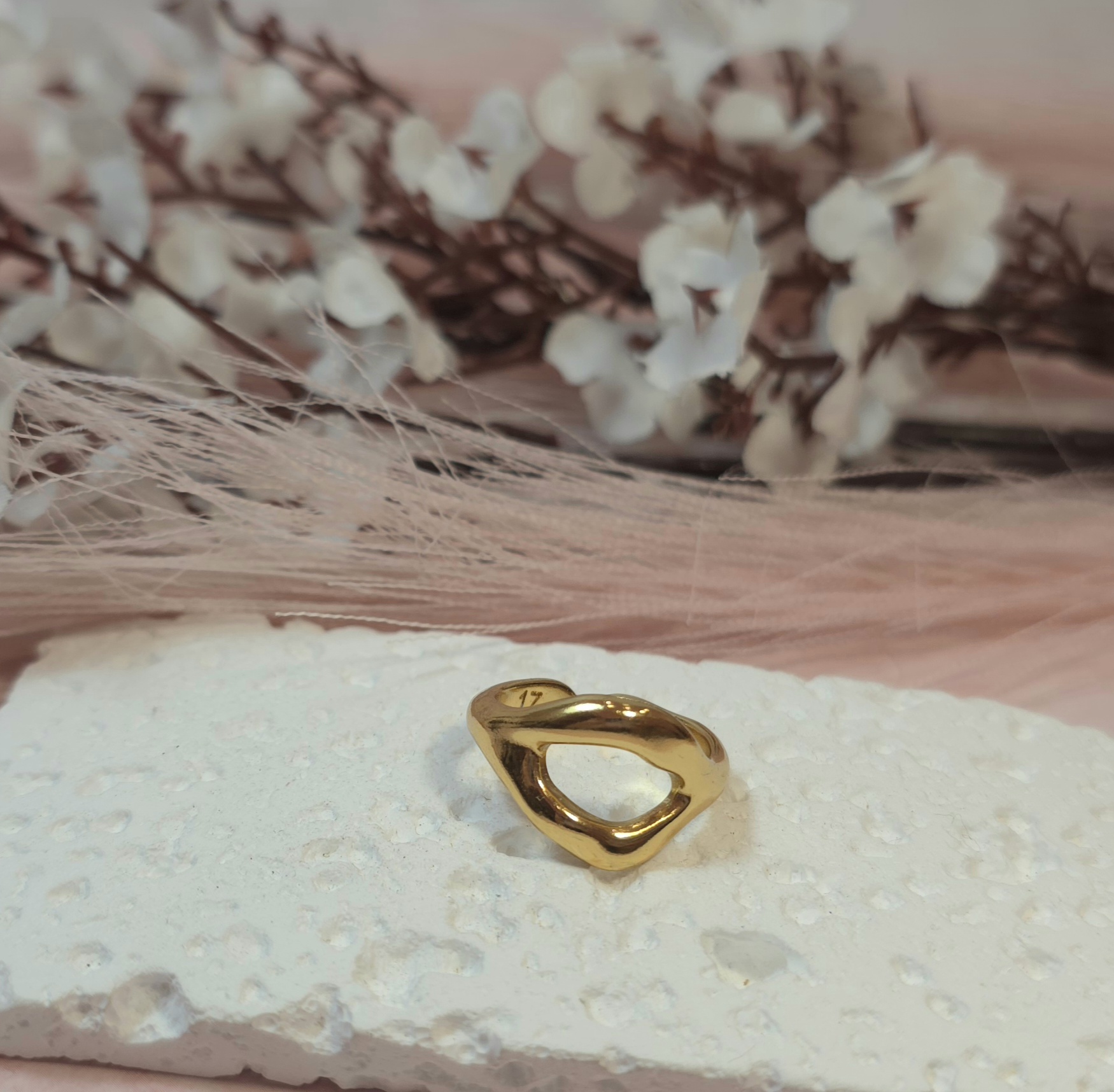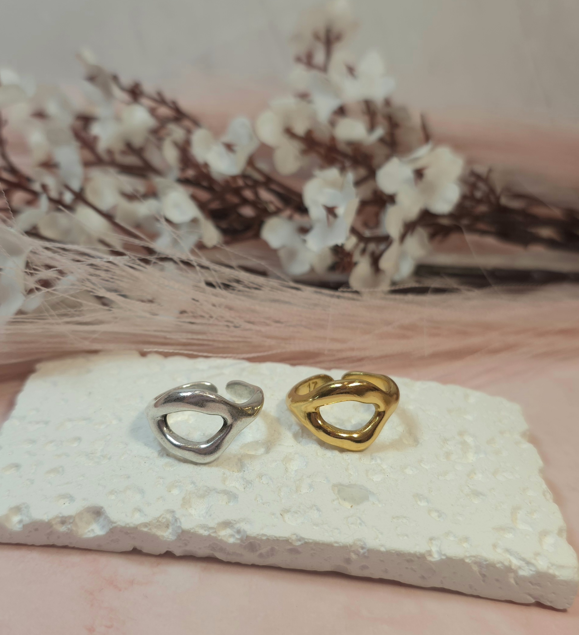 Επάργυρο ή επίχρυσο δαχτυλίδι. Υπάρχει σε ασημί και χρυσό χρώμα. Ανοιγοκλείνει. Είναι υποαλλεργικό.