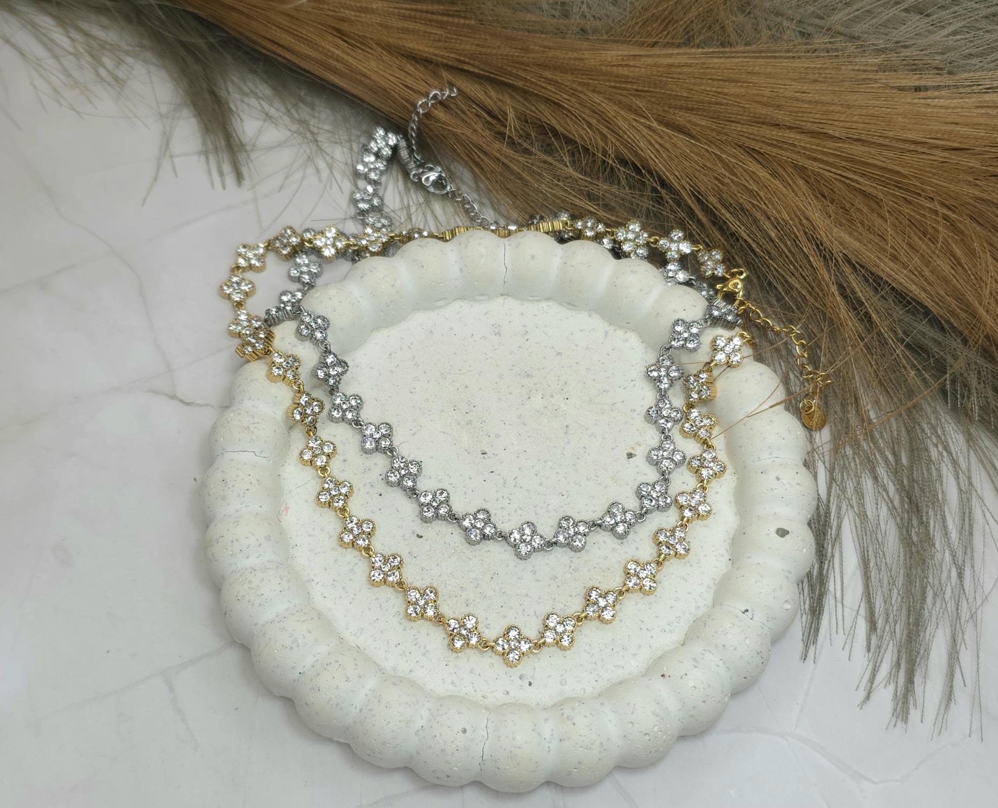Ατσάλινο κολιέ ριβιέρα. Έχει αυξομείωση. Είναι υποαλλεργικό. Υπάρχει σε ασημί και χρυσό χρώμα με διάφανες πέτρες.