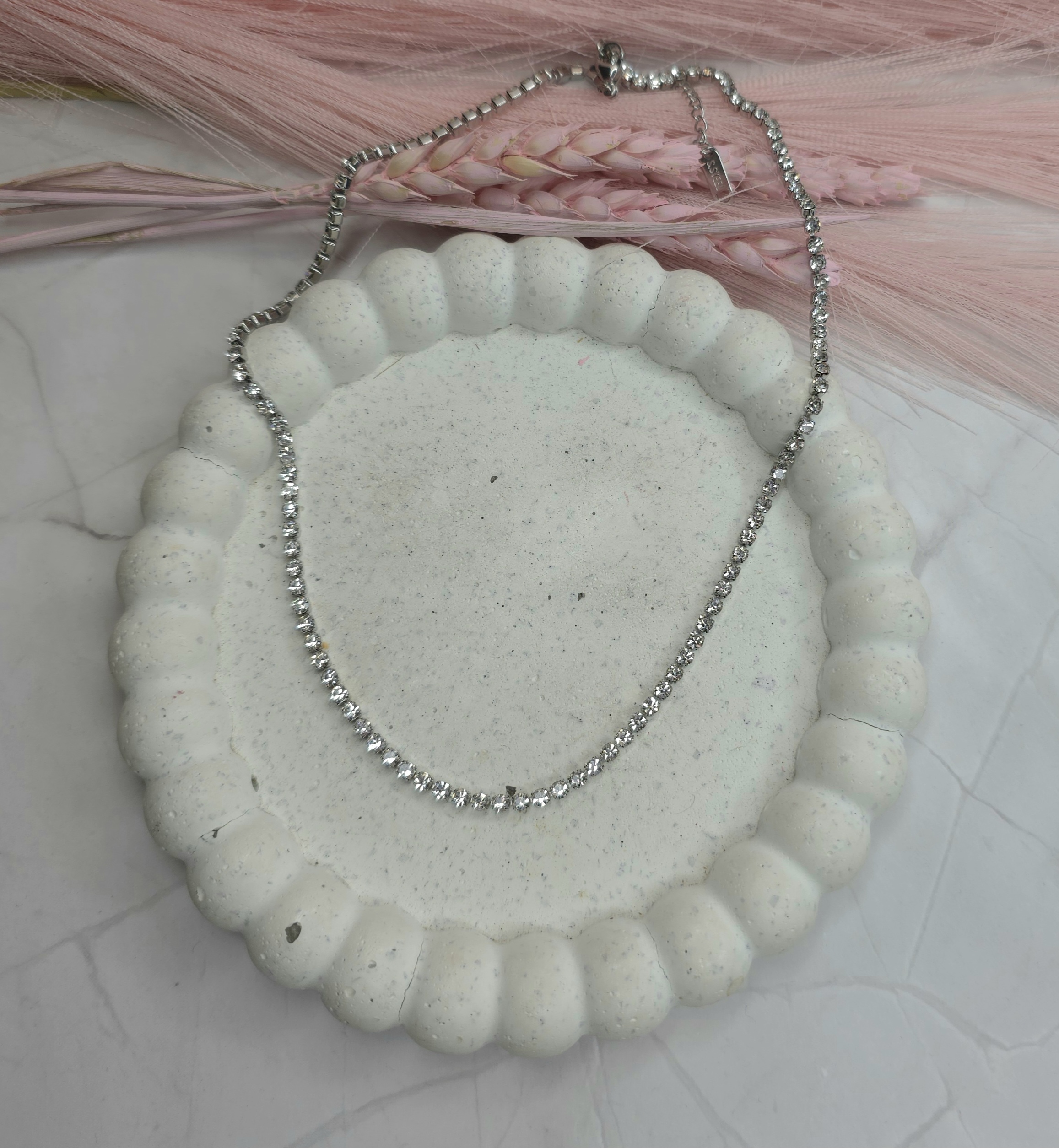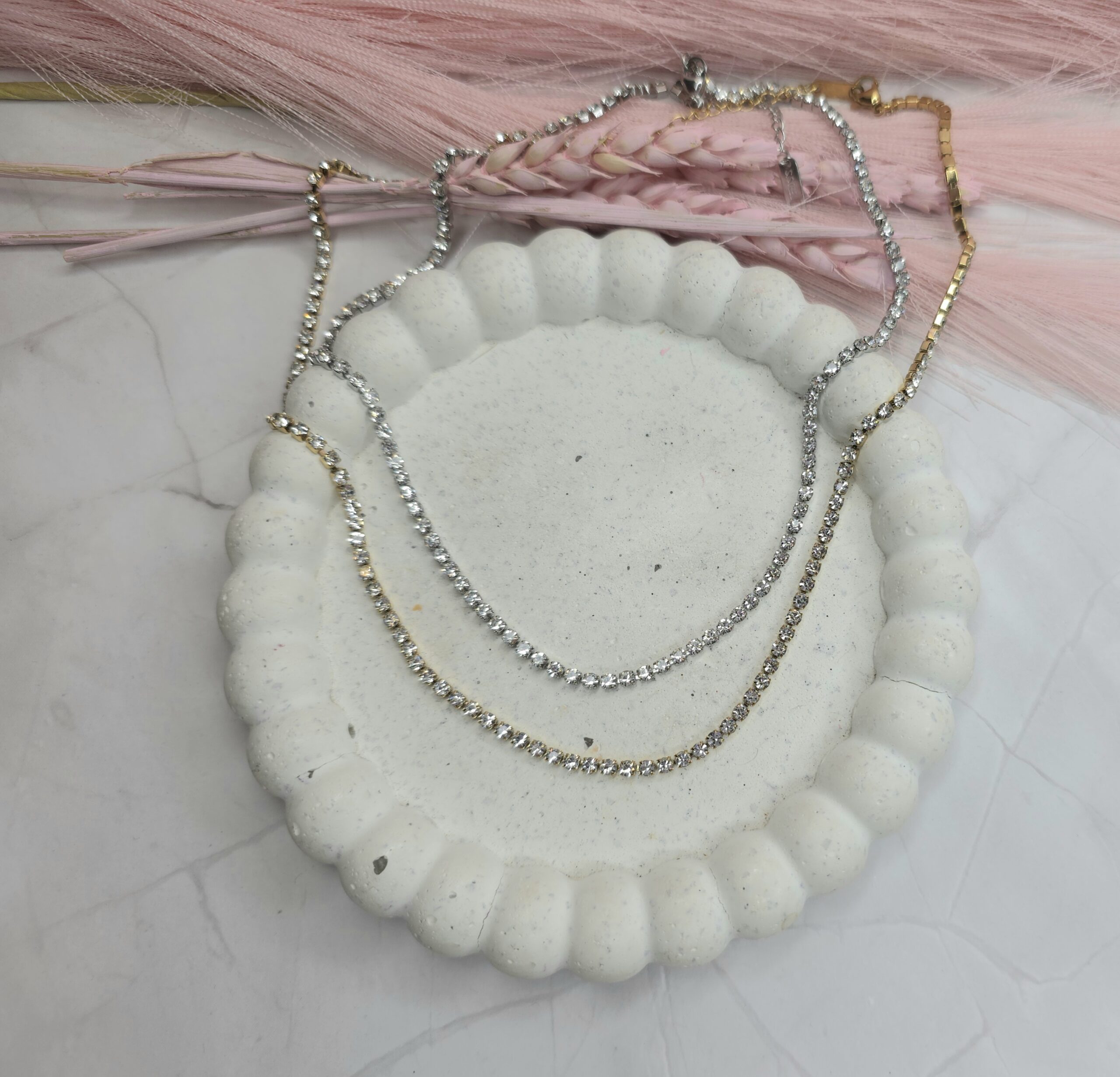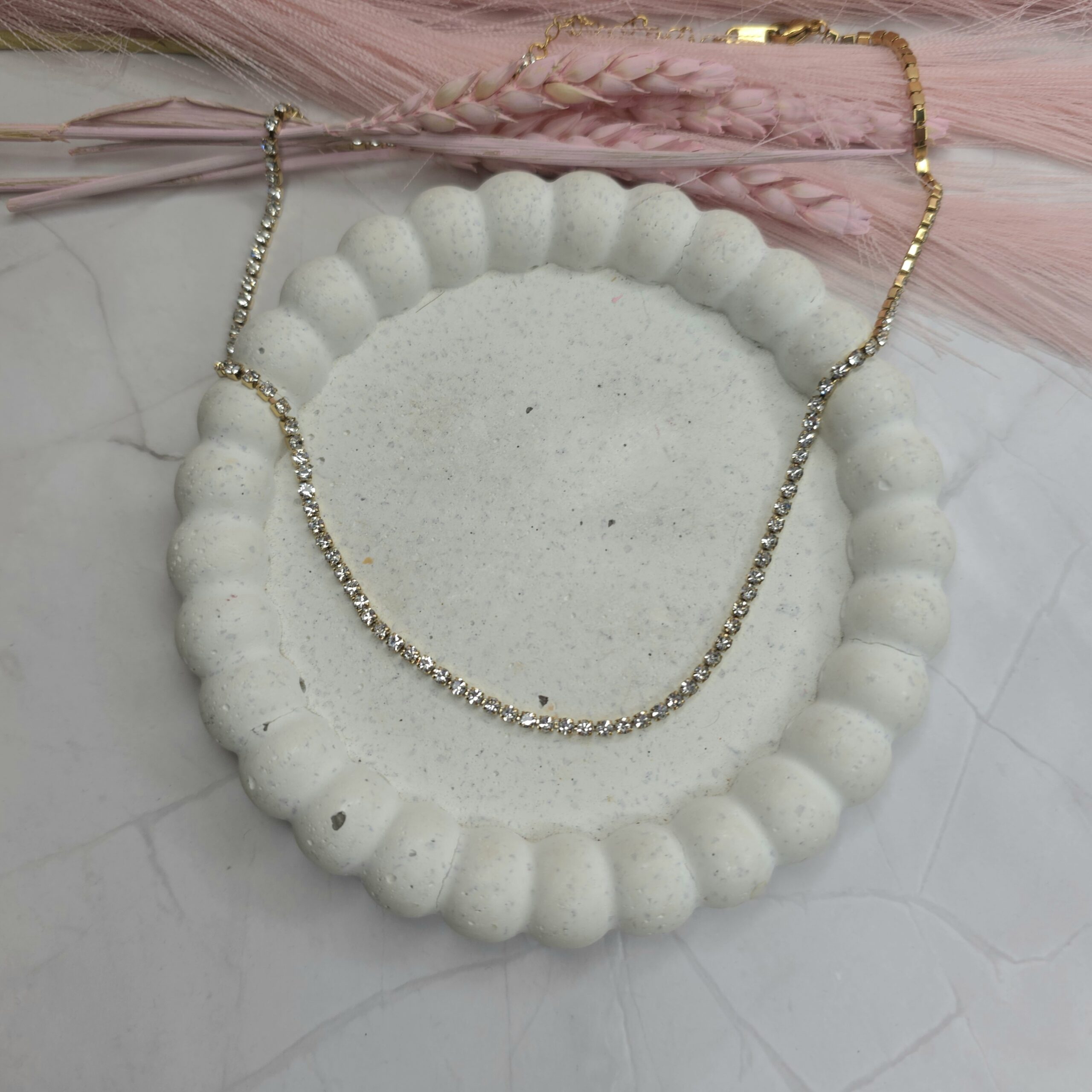 Ατσάλινο κολιέ ριβιέρα. Έχει αυξομείωση. Είναι υποαλλεργικό. Υπάρχει σε χρυσό χρώμα με διάφανες πέτρες.