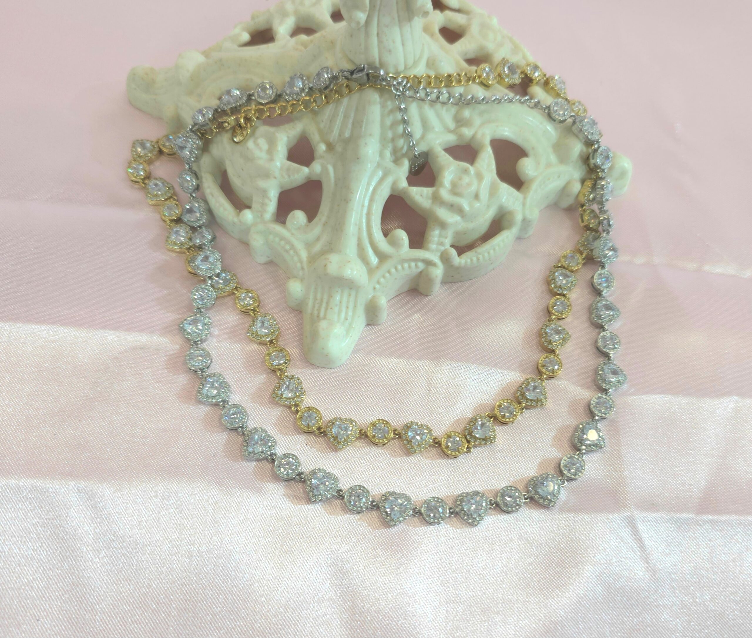 Ατσάλινο κολιέ ριβιέρα. Έχει αυξομείωση. Είναι υποαλλεργικό. Υπάρχει σε χρυσό χρώμα με διάφανες πέτρες.