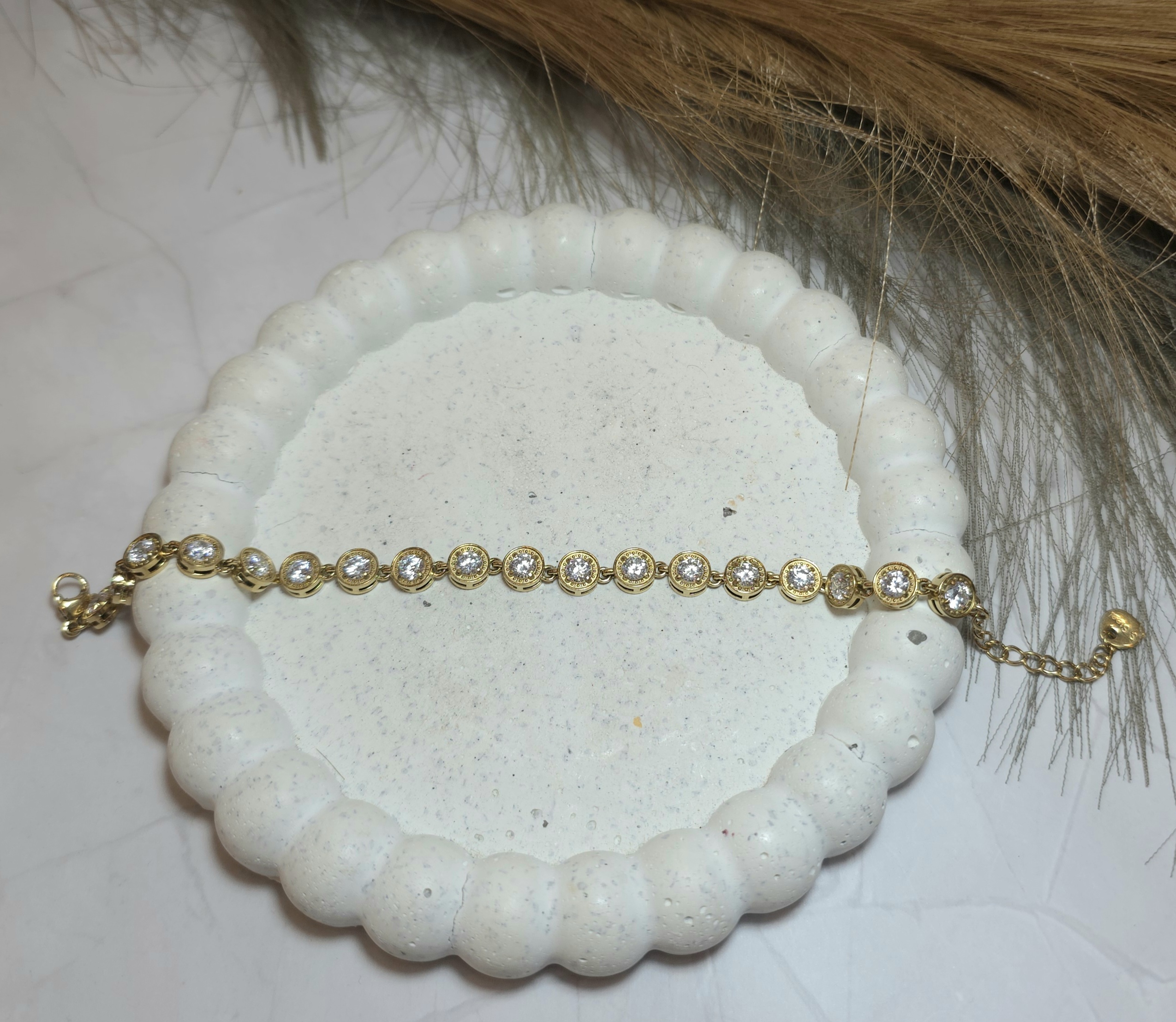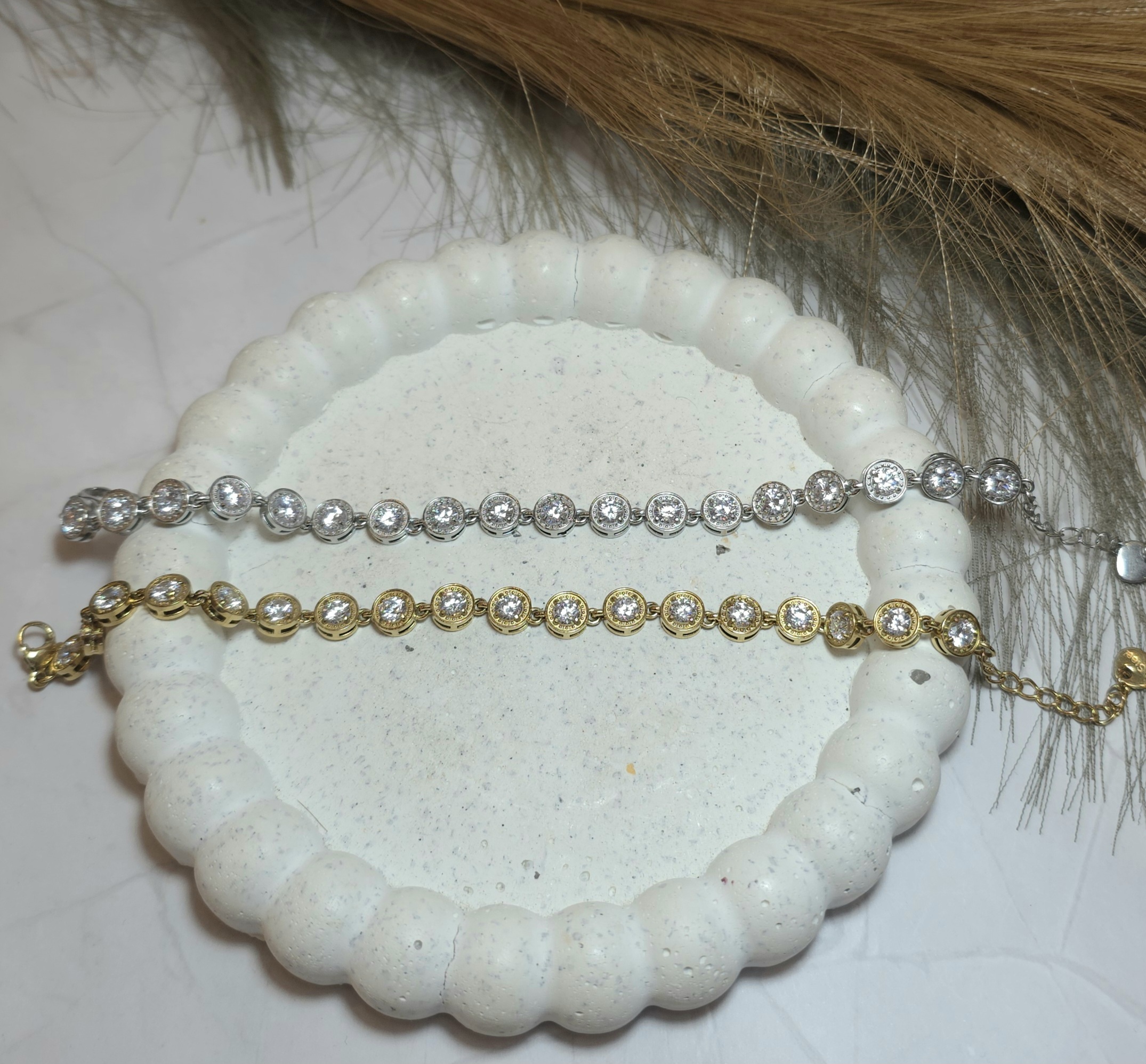 Ατσάλινο βραχιόλι με διάφανα στρας. Έχει αυξομείωση. Είναι υποαλλεργικό. Υπάρχει σε ασημί και χρυσό χρώμα.